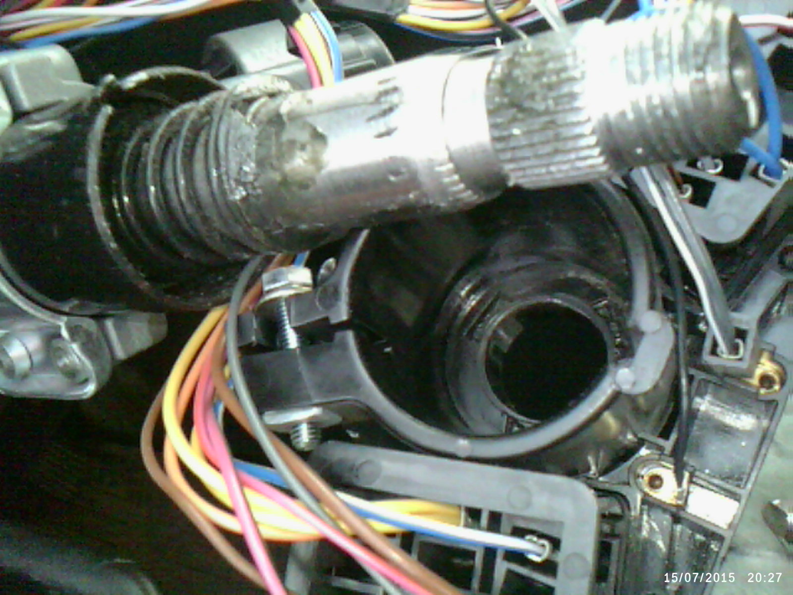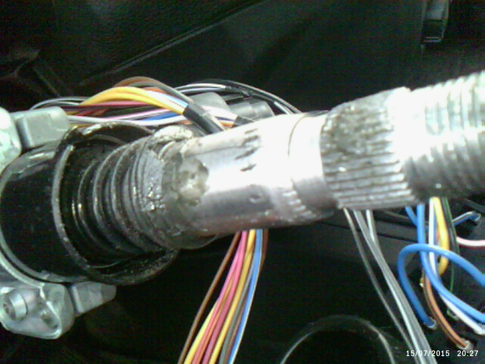 Скрипит пластиковая шайба из за отсутствия смазки, а также пружина об конструкцию управления поворотниками. Устранил минут за 40. Снял коробку в которой прячется аппарат управления поворотниками и замок зажигания (5 болтов). Крышка сигнала снимается наглым выдиранием на себя. Руль снял просто. Отключил клеммы. Легко открутилась гайка и при снятии даже не надо было стучать. Если не идет, давите коленями руль на себя, и резким ударом молотка по валу, через какую-нибудь проставку(керн или болт), срываете. ВАЖНО: при этом не откручивайте до конца гайку. Грозит ударом молотка, на пару с рулем, себе в лоб. Пластиковое кольцо снимается отверткой нежно и легко. Аппарат управления сигналами поворота снимается после откручивания болта хомута внизу. Аппарат опирается на пружину, но по ходу лучше на нее не опираться, а зафиксировать эту конструкцию этим же хомутом на пару миллиметров дальше от пружины. Правда я все таки поставил как было, предварительно смазав. Если заскрипит сделаю как написал, руль при этом снимать не надо.