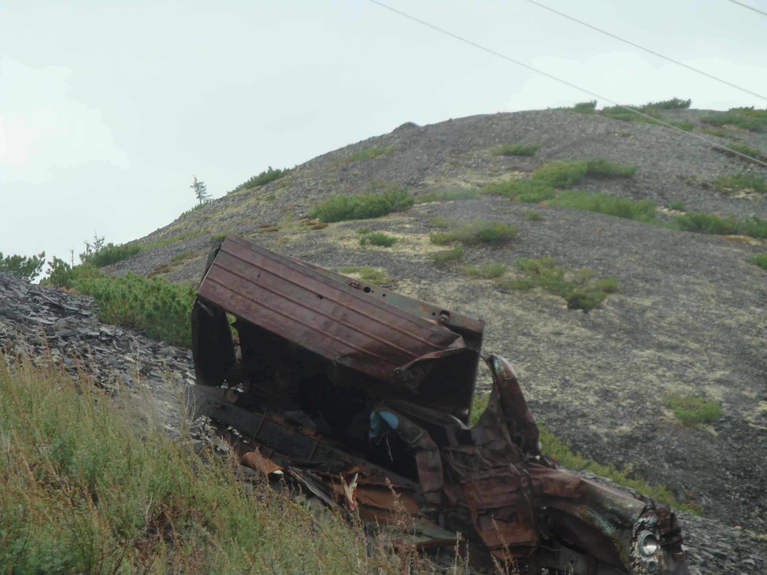 На всем расстоянии до Усть-Омчуга встретили только одну бригаду пожарников. Не спеша, добрались до поселка. Было решено осмотреть бегло населенный пункт, впоследствии, как выяснилось, поселок ничего так по сравнению с другими жилыми комплексами. Жить можно, держится, скорее всего, за счет налоговых средств от предприятий-золотодобытчиков. Заехали в местную кафешку на окраине поселка, т.к. желудок уже начинал урчать и просил еды. Купили по чебуреку (как помнится, по 44 рубля за штуку), сразу подогрели нам их в микроволновке. Выйдя на улицу, совершили мобильные звонки в Магадан (в Усть-Омчуге работает связь МТС), т.к. до Сусумана потом связи уже нигде не будет. После этого отправились за окраину поселка, где, заехав к какому-то отстойнику (пережитку старательских разработок), перекусили чаем с чебуреками. До самого Усть-Омчуга местность вокруг дороги мало изрыта старательскими разработка-ми. Далее же по Теньке пейзажи, как после войны. Да и само полотно дороги оставляет желать лучшего. Хотя и стоят по трассе дорожники, однако над 1 работающим 10 человек вокруг склоняются. Местами скорость движения была, как «у черепахи по льду». Время шло, а мы держали путь дальше. Проехали поселок Транспортный, более похожий на нежилой (очень много развалин). Далее впереди по карте был Омчак (это 300 км по теньке). На всем пути от Усть-Омчуга до Омчака встретили только 1 драгу, неработающую. -------------------- Каждый сам выбирает свой путь