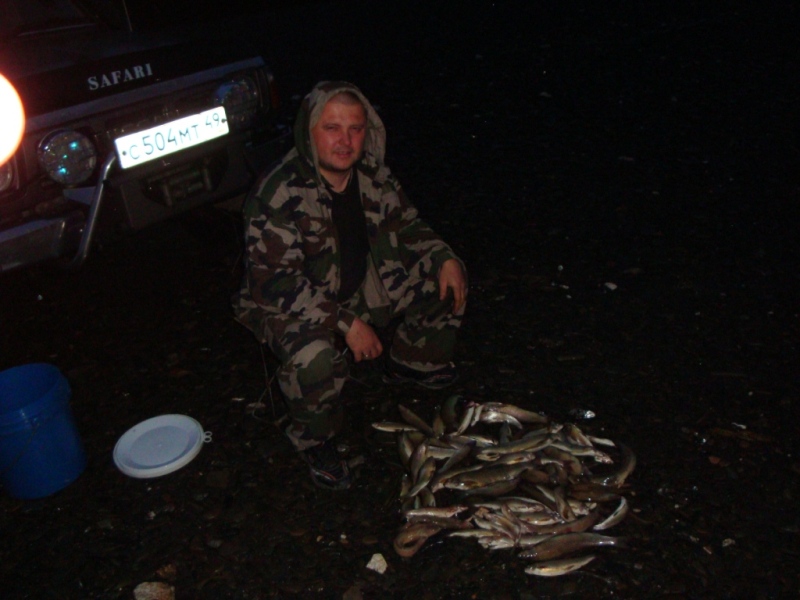На той стороне реки дорога, сделанная бульдозером. На берегу довольно накатано тяже-лым транспортом – то ли камаз, то ли урал. Как узнали позже, там моют рыжье. Мы поехали вдоль реки вниз по течению, надеясь, что при впадении в Аян будет хороший плес. Пару раз форсировали реку без особых проблем, выехали в устье. Картина хотела желать лучшего – в этом месте Аян-Юрях очень большой ширины, вода под берегом просто стоит, на мелководье куча деревьев. Рыбалки нет. Уже темнело, а нам выбираться на Аркагалу. Поехали обратно. Заморосил дождь. То ли мы устали, то ли действительно, но в сумерках дорога казалось трудной, плохо видимой. Только в двенадцатом часу добрались до Аркагалы. Решили остановиться чуть ниже раз-рушенного моста, благо место тут было хорошее на перекате. Потрошить рыбу уже не было времени, убрали ее в реку (в ведре). Насобирали дров, решили готовить ужин. Дождь мерзко продолжал моросить. Из парочки налимов, которые побольше, сварили уху. Варили на костре, разведенном в мангале. Рядом развели костер побольше, чтобы комары появляющиеся периодами, меньше доставали. Особенно много их было, когда стали выкладывать вещи. Нарезали огурчиков, лука, разлили уху, сели ужинать. На решетку положили харитона и оставшихся 2-х налимов – все это на угли. Пока кушали уху под водочку, рыба на решетке издавала приятный звук жарящегося филе. Оказалось, что налим свежезапеченный очень нежен. Вдруг на переезде раздался шум двигателя, сначала подумали – это бульдозер. Послушав лучше, определили, что это урал. Проехав брод, он остановился. Мысли, мужики решились на привал. Да и куда они едут? Примерно через полчаса урал пошел дальше. Костер поддерживали до 3-х ночи. Все это время обсуждали дальнейшие планы – поездка по основной трассе до Днепровского и там рыбалка. В этот же момент промелькнула мысль – а не вернуться ли обратно на Аян и попробовать добраться до крупного заброшенного Адыгалаха? Там рыбалка должна быть еще более знатной. Еще когда мы ехали днем до Аяна, заметили такую картину: все «линзы» на дороге акку-ратно были засыпаны грунтом. «Связисты» - еще подумали мы, т.к. вдоль дороги проходил кабель связи, о чем свидетельствовали встречающиеся таблички и пункты-будки. И насколько мы ошибались в этом, как показал следующий день. Примерно в 3 часа ночи, уставшие и сытые, мы полезли в машину спать. Так закончился второй день нашего путешествия. НА Асаны мы не попали, т.к. решили вернуться и продолжить путь дальше -------------------- Каждый сам выбирает свой путь