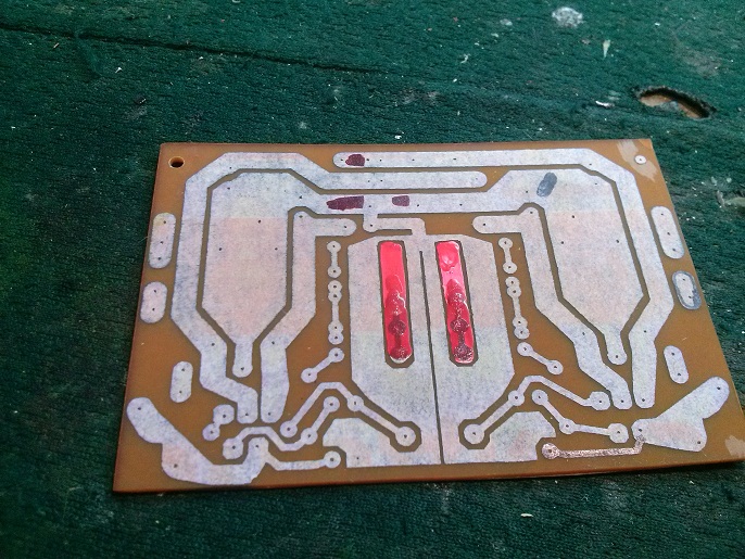 Круто! Буду следить. Расскажите как будете переносить рисунок на плату? Там нужно химическую реакцию провести, протравить дорожки. Как это будет? сначала на компе делается разводка. для этого есть проги. затем она печатается на лазерном принтере на мелованной бумаге или кальке. пару проб разной бумаги опытным путём. обычная не подойдёт. не всякая мелованная подойдёт. консистенция нужна примерно как у журнала Огонёк. листок с распечаткой приглаживается к печатной плате утюгом. потом под водой смывается пальчиками бумага. всё что было в порошке, т.е. дорожки, - остаются держаться. плата опускается в хлорное железо, медь тает, дорожки остаются. я даже скажу - остаются напечатанные тоненьким шрифтом пояснительные надписи. далее дырки (отверстия) сверлятся шуриком. я их поэтому в проге делал пожирнее. технология просто отпад! прим. нужно учитывать зеркальность монтажа. т.е. вида платы "сверху" и снизу. я так прокололся, пришлось микросхемы со стороны дорожек запаявать. Сообщение отредактировал Гидр - 28.11.2017, 1:56 -------------------- Разница других исполнителей, которые пытались перепеть эту песню, в том, что они поют как будто идут на войну, а Цой - будто вернулся оттуда.