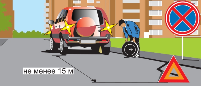 В жизни большинства водителей бывало, когда было необходимо остановиться. Но есть ситуации, когда останавливаешься не по своей воле. Например когда сломалась машина. Куда деваться, если автомобиль не заводится и просто не может поехать. Но одно дело когда ты никому не мешаешь. А если например машина стоит под запрещающим знаком? Большинство водителей пытаются починить ее на месте. В данном случае на изображении водитель меняет колесо. При этом есть знак остановка запрещена. Нарушил ли данный водитель? Если вынужденная остановка произошла в населённом пункте обозначенном знаками 5.23.1 или 5.23.2 (белый фон), то не нарушил. Если остановка в населённом пункте обозначенном знаком 5.25 (синий фон), или вне населённого пункта и расстояние до знака аварийной остановки менее 30 метров, то нарушил. Спасибо! — Shiko