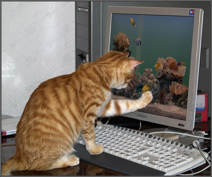 to БЯКА: между прочим не смешно - третью клаву поганит. Когда гости - сидит тихо, как никого - с ума сходит... Жаль фотоаппарата нет.