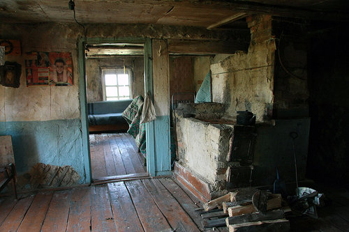 К середине третьего дня мы вышли на большую марь. Для тех, кто не знает, марью у нас называют поросшее травой болото. Я даже стихотворение написал: Если булькнула машина так, что и колес не видно, и везде вода сочится — значит, парень, ты на мари… доставай сандреки быстро! Прыгаешь на землю, а земля под тобой качается… и машина качается… На тяжелом джипе со стандартными колесами в такой мари делать нечего. Утонет сразу. Годзилла хоть и 4-тонная, но и колеса у нее 44 — марь для нее родная стихия. У Эскудо хоть колеса намного меньше (31/33), но и вес — полторы тонны, поэтому тоже марей не боится. ЛендКрузер был где-то посередине — и вес средний, и колеса умеренные, но по мари ему пойти не довелось. При выходе из леса на марь раздался знакомый «хрусь» и второй передний привод отдал железному богу душу… Эх, хорошая была запчасть, новая! Никто даже не удивился. Все заранее знали, что второй передний привод — просто вопрос времени. Если и было удивление, то только от того, что второй привод держался так долго. К счастью для всех, немолодой уже пилот Ленда был не только водителем, но и старшиной шлюпки! Надувная лодка с мотором были в багажнике! А до болотистой реки, по которой можно было выйти в залив и дойти до самого Ныврово оставалось всего 100 метров! Итак, Ленд остался дожидаться хозяина в начале бескрайней мари, Турбодедушка накачал своего надувного друга, сел в лодку и пошел по реке. Бодро и весело, быстро и легко, делая по сотне метров за несколько секунд… А нам на трех машинах предстояло идти эти сотни метров по нескольку часов… Почему машины не плавают как лодки? Проводив деда, мы двинулись дальше. На сегодня нашей целью были несколько домиков по ту строну мари. Домики остались с советских времен, когда на мари заготавливали сено и вывозили в Оху — зимой, когда замерзали болота и ложился снег. Кстати, домики те стало видно через полкилометра после начала мари. Казалось вот они… рукой подать. Примерно пять минут езды по прямой… Ага, размечатались… Марь — такая штука, что идти ее нужно по краю, ближе к лесу. Потому что чтобы было за что цеплять лебедку. Прямая дорога до домиков сразу увеличилась в разы. Плюс, не везде марь была проходной, приходилось сворачивать в лес, вновь пилиться и ворочать стволы деревьев, устраивая объезды. Больше всего проблем доставляли ручьи, падающие в залив и проходящие через марь. Я, как житель южного Сахалина, всегда считал, что ручей — это что-то бурное, веселое, с каменистым дном и прозрачной водой. Из ручья можно брать воду, пить ее сырой или делать из нее чай. Север Сахалина это не сопки, это низменность с болотами, поэтому и ручьи там совершенно другие — черные, глубокие, извилистые, медленные, с кисельным дном и берегами — сущее мучение для джипера. Из таких ручьев можно пить чай, не имея заварки — по крайней мере, цвет совпадает. Вот, например, один из таких ручьев… Как мы их переезжали, это вообще отдельная история. Но вариантов было, как правило, два — либо брать как можно ближе к лесу, там дно потверже… и проваливаться в ручей всей машиной, а потом лебедиться за дерево. Либо гатить проклятый ручей тем, что рядом растет — как правило ивой и укладывать сверху сандтраки. Сандраков у нас было с собой четыре штуки. Именно было. Потом не стало. Отгадайте, куда делись сандтраки? Три попытки у вас. Забыли — нет, это банально. Сл