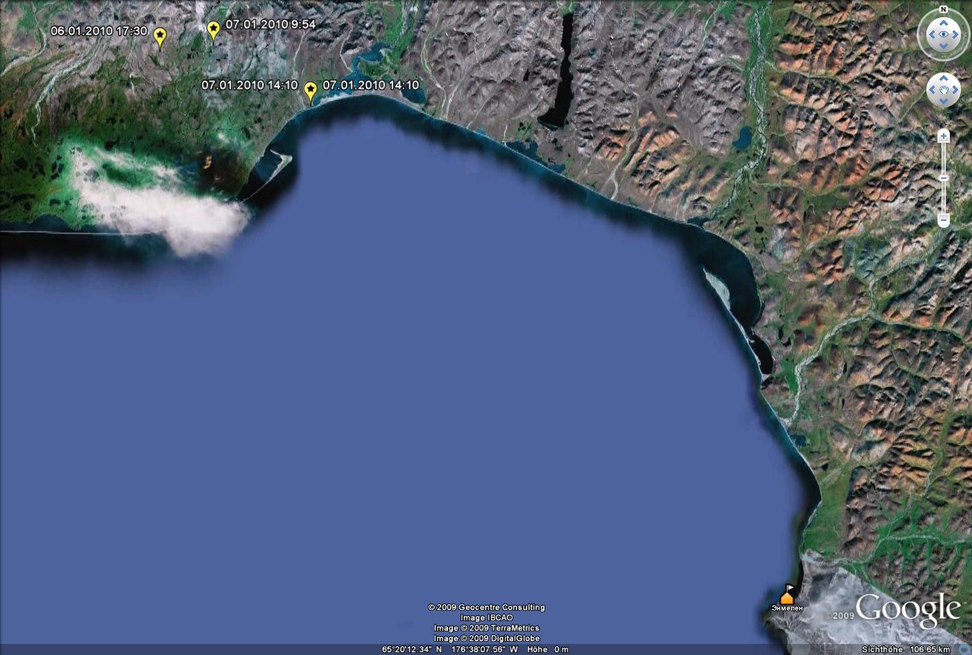 Во время непрекращающегося погодного «окна», которое длилось несколько часов мы полетели в прошлую пятницу на специальной машине авиакомпании «Чукотавиа» в Анадырь, которая использовала это окно для транспортировки продуктов питания в Лаврентию. После 1,5 меяцев напрасного ожидания за день до этого я решил, что последующее ожидание не имеет смысла. По причине сильных ураганов команде российскиx органов власти по оформлению нашего выезда было невозможно добраться до нас в Уэлен, а так же вернуться оттуда в соответствующее время назад. Во время нашего 1,5-месячного ожидания только одному из вертолётов удалось слетать в Уэлен. Нам удалось вылететь только потому, что мы нашли отважного вoдителя снегохода, который имел смелость двинуться в дорогу ночной поездкой в промежутке между двумя ураганами, ну и конечно же он не хотел упустить необыкновенный шанс заработать. Адская поездка. В этой связи я могу понять и акцептировать сомнения официальных учреждений. Тем временем весенние ураганы добрались и до Берингова пролива. Пересечение на данный момент исключено. Тем неменее для экспедиции это означает, помимо высоких финансовых затруднений, перерыв минимум на несколько месяцев. Сначала я вернусь в Германию, чтобы вести переговоры, для того чтобы решить, как нам продолжить. Для продолжения прежде всего нам по-прежнему необходим союз партнеров, который в будущем поддержит экспедицию. Я благодарю команду 2010, которая, несмотря на все трудные ситуации, доказала себя благодаря очень высокой степени силы воли, упорства и мужества, я очень рад всему достигнотому до настоящего времени. Хотелось бы поблагодарить за чрезвычайно теплый и дружественный прием в Лаврентии во время прошедших дней, за приятный персонал с ухоженным проживанием, где нам можно было поспать, и в особенности выразить благодарность администрации города, Виктору, Марине за сердечность. -------------------- |