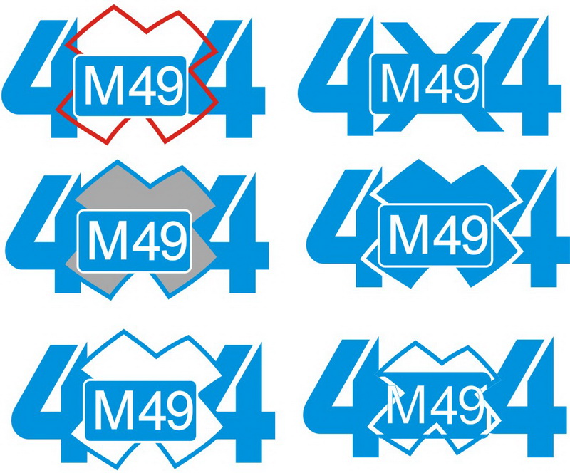 стилизованная эмблема квадратная (прямоугольная) где вторая часть буквы Эм путем подставки лишней палочки символизирует цифру 4 (первую) затем идет "х" а потом "49", прчием "4" из "49" можно также стилизоватьм под первую четверку.... ну как? =) -------------------- Ласковый ЗвЕрЬ!