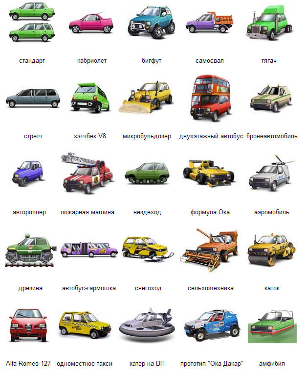 Вот тенденции АВТОВАЗа на автомобиль ОКА.Смотрится даже очень ничего,а с ее то расходом.Короче в ЦРС для людей с небольшим достатком машина даже очень нормальная Да, собственно, Ока и старая в ЦР одна из самых популярных авто. Низкая стоймость, расход. Если у человека встает выбор купить авто с завода и денег хватает только на ТАЗ(а он с завода стоит 7-8тыс у.ев), то не редко человек покупает ОКУ (за 3-3,5у.е) а разницу тратит на усовершенствование. Тем более что в таз надо бдет тоже вложится. Так и получается что за 5-6 у.е. нормальная малолитражка, с газовыми стойками, литьем, евросалоном и прочей хренью. +расход 5-7 литров.Идеал для большого города. Для вседений: обвес по кругу на ОКУ стоит всего 5000 руб. В обвес входят Бампера, пороги и т.д. Торпеда в салон(со всех хренью), под иномарку еще 5000 руб. т.е. цены мизерные. -------------------- Из сложившейся ситуации в России есть три выхода: Домодедово, Шереметьево и Внуково.