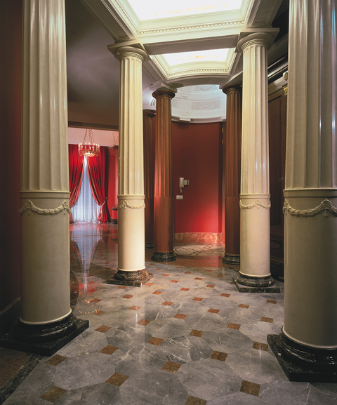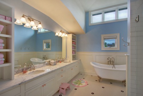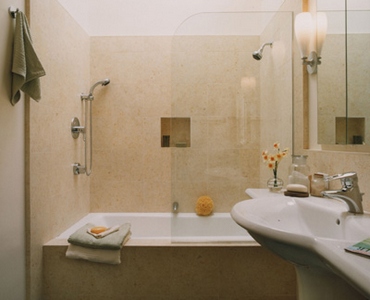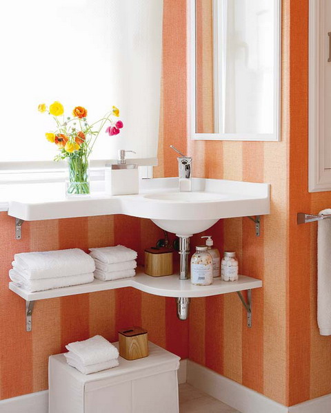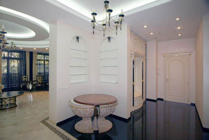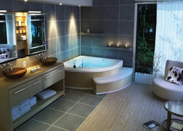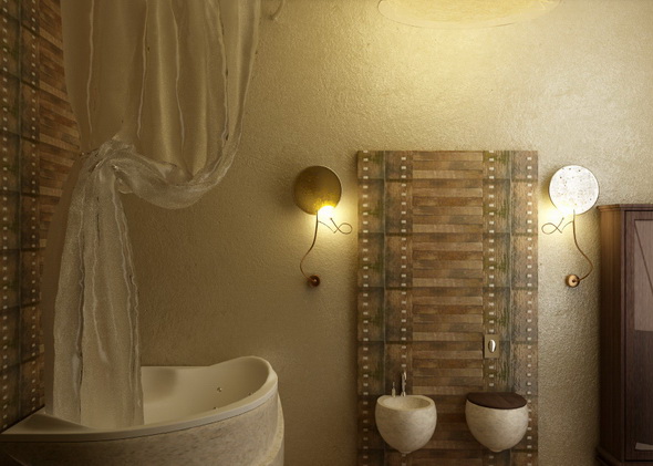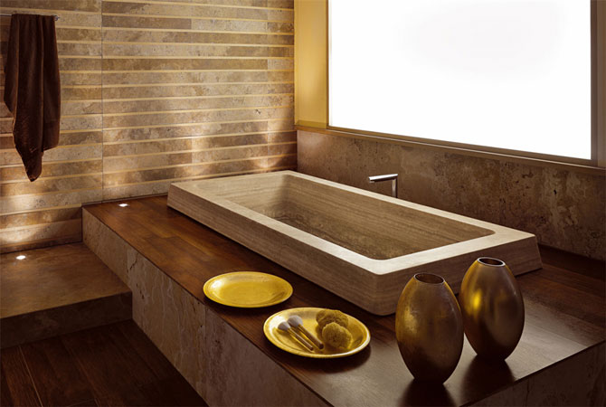 Очень нравятся в ванной комнате порталы с утопленные в них умывальниками.