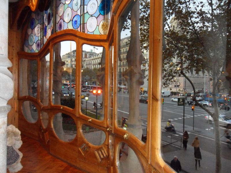 в барселоне дома работы а. гауди, за исключнием его собственного дома, используются и по прямому назначению, и как музеи... необычно сквозь неплотно закрытые шторы в интерьере модерна увидеть современный стол, кухонную технику и комп...