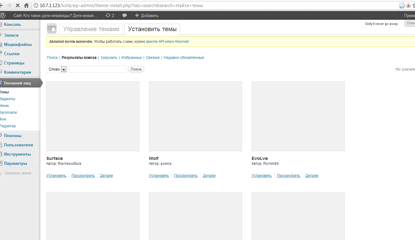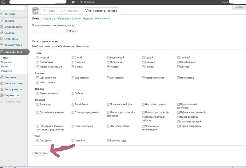 Тему добавить легко. Справа есть надпись "Управление сайтом" ты уже на нее не раз нажимал, ты попадаешь на страничку администрирования сайта. Там справа на ходишь надпись "Внешний вид", а потом нажимаешь "Темы". Вверху нажимаешь "установить темы". У тебя загрузится страничка с кучей галочек, там можно выбрать цвет, стиль и так далее... После того как поставишь галочки нажимаешь кнопочку внизу "Найти темы". И он тебе найдет по твоему запросу. В итоге ты увидишь кучу тем и под каждой надпись "Установить". Так они и устанавливаются. (можешь нажимать на картинки тем чтобы ее сначала посмотреть) Вот так должна выглядеть страница поиска тем: Напиши как получится Сообщение отредактировал hightway - 8.8.2012, 22:59 -------------------- Оформление полисов ОСАГО и КАСКО по ОЧЕНЬ выгодным ценам в ведущих страховых компаниях.