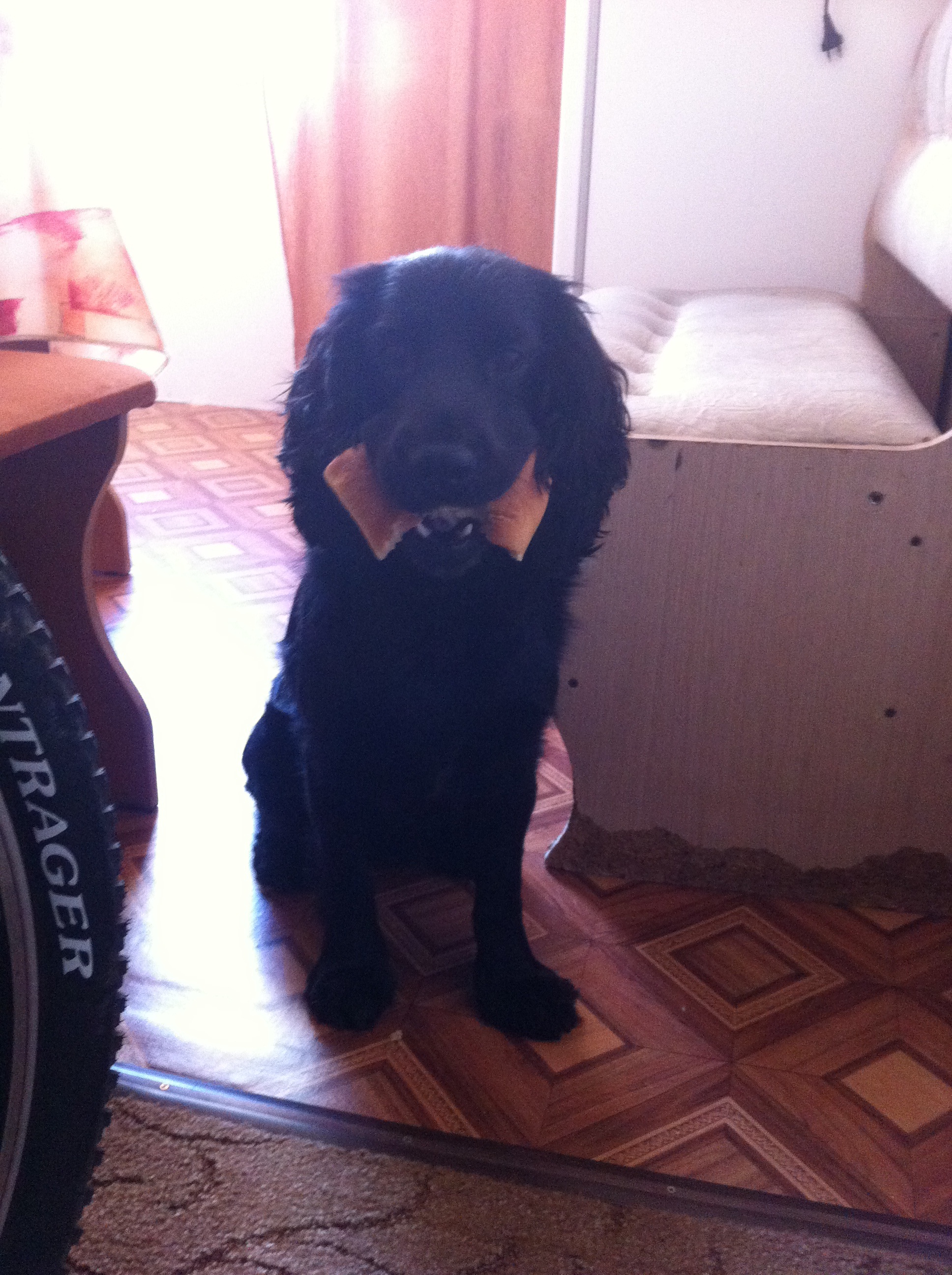 видел в пятницу, наверно он, небольшой такой. Два года не дашь. Перебегал дорогу на светофоре якутская-марчеканское шоссе. Побежал в сторону марчекана.