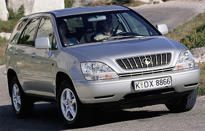 Lexus RX — среднеразмерный кроссовер, выпускаемый японской компанией Toyota с 1998 года. Официальная тойотовская легенда гласит, что однажды в 1993 году Акихиро Уада, один из боссов компании, возвращаясь с делового обеда в Голливуде, поразился обилию внедорожников на хайвеях одного из богатейших штатов Америки. И задумался. Если у американцев престижно ездить по асфальту на неприспособленных для этого тяжелых вездеходах, почему бы не предложить им высокий и полноприводный легковой Lexus? Первое поколение (1997—2003) – Lexus RX300 Впервые автомобиль с таким внешним видом был показан в 1997 году. Правда, тогда он появился под именем Toyota Harrier и был доступен лишь для японских покупателей. Его оснащали двигателями объемом 2,0 л. (140 л.с.), 2,4 л. (160 л.с.) и 3,0 л. (220 л.с.). А вот в 1998 году был представлен уже Lexus RX300 - он первое время продавался исключительно на североамериканском рынке, но в 2000 году его стали поставлять и в Европу. Lexus RX300 имел только 3,0-литровый агрегат V6 мощностью 223 л.с. с автоматической коробкой передач. Покупатели оценили в первую очередь дизайн этой модели, которая до сих пор смотрится очень стильно. Пожалуй, именно из-за внешнего вида многие и брали этот автомобиль. Большинство продаваемых у нас RX300 приехали из США или Канады. Последний вариант считается чуть более предпочтительным, так как у таких машин светотехника соответствует европейским требованиям. Однако Lexus RX300 из Старого света тоже не являются редкостью. Они немного отличаются от "американцев". Во-первых, у "европейцев", как правило, 17-дюймовые колесные диски, более жесткая подвеска (лишь на чуть-чуть, но управляемость от этого на высоких скоростях стала лучше) и пр. Внутри тоже есть различия - например, во всех европейских Lexus RX300 стоит монитор Touch-screen, но при этом может отсутствовать память сидений. Lexus RX 300 первого поколения имеет постоянный полный привод с межосевым дифференциалом, блокируемым вискомуфтой и КПП — 4-диапазонный «автомат». Спереди и сзади, подвески McPherson со стабилизаторами поперечной устойчивости. Силовой агрегат — 3-литровый 24-клапанный 220-сильный мотор V6 (1MZ-FE) плюс автоматическая 4-ступенчатая коробка. Тормоза дисковые, передние — вентилируемые. Сиденья первого ряда имеют восемь регулировок, а также боковую поддержку. Существует комплектация Sport с чёрным салоном и вставками на консоли под алюминий. Двигатель имеет настраиваемые впускной и выпускной тракты и — впервые на внедорожнике — изменяемые в зависимости от нагрузки фазы газораспределения. Довольно сложно, но без этих технических решений, мотор был бы слаб для такого автомобиля (1676 кг в переднеприводном варианте, и без малого две тонны с полным приводом). Водитель, впервые севший за руль Лексус RX300 отмечают, что автомобиль построен как бы вокруг водителя, обладая высочайшей эргономикой и большим объемом внутрисалонного пространства. При этом, пассажиры чувствует себя в "рэксе" настолько же комфортно, как и водитель. Качество отделки и сборки салона соответствует требованиям дорогого японского автомобиля, оптитронная подсветка приборов не оставляет сомнений, что это именно Лексус. Плюс ко всему вышесказанному, Лексус RX300 обладает хорошей плавностью хода и шумоизоляцией. Даже по меркам легкового автомобиля, "рэкс" покоряет ездовым комфортом (среди паркетников в этом сегменте он лучший). Lexus RX300 оснащался только одним