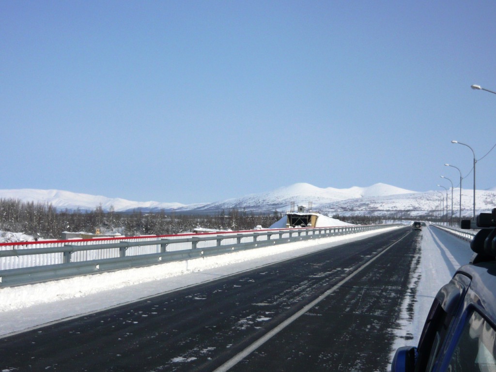 Целью поездки являлся осмотр участка дороги Усть-Омчуг - Нулевой километр в дневное время ранней весной. Планировался выезд в 6 утра, ночёвка в посёлке Холодный и возвращение в Магадан по основной трассе. Темп предполагался спокойный, с остановками и фотографированием. Машина Сузуки-Джимни, 0,7 литра, 2004 год. Задние сидения сняты и там лежит весь шмурдяк. В связи с тем, что в выходные дни трафик по Тенькинской трассе очень мал и не исключалась ночёвка в машине, был сделан акцент на тёплой одежде, спальном мешке и запасе еды на сутки. Для того, чтобы укрыть капот на ночь в случае ночёвки на дороге, были взяты несколько больших кусков брезента и покрывало. Машина в моих руках четыре года и с такими поездками смирилась. В пути ничего не разу не ломалось, кроме давнего прокола колеса в Дебине. Тем не менее, всегда вожу ключи, ремень и катушку зажигания. Кроме того, на крыше шестое колесо, лопата и довольно длинная верёвка. Дополнительно установлены дуга, на неё ещё одни фары и рация (хорошо помогает в мякитской пыли летом). Всегда беру с собой горячую воду в канистре, т.к. часов через 5 хочется хорошо умыться. Как правило, с собой две канистры бензина (около 38 литров). Второе лобовое стекло в этот раз не устанавливал, т.к. днём тепло и еду я один. В машине не жарко и не холодно - на мне две рубашки, тонкий свитер, горнолыжные штаны. Зимние сапоги на размер больше. Имеется привычка сидеть за рулём только в носках. Печка работает в среднем режиме, чтобы не осушать воздух и не часто пить. Компоновка машины не располагает к высокой скорости или я не гонщик, насмотревшись на трассовские аварии езжу не быстро, а по Теньке - особенно. Итак, 8 марта в 6 утра, я отправился в путь. В цветочном магазине были куплены и упакованы тюльпаны и машина неспешно покатила в неблизкую дорогу. Первая остановка - заправка на Соколе. Температура -32, свежо. Залился полный бак и вперёд. Приятно ехать утром и испытывать "щемящее чувство дороги"... Следующая остановка - магазин на Палатке, в котором есть пекарня и свежая выпечка. Я сильно сомневался, что 8 марта рано утром будут свежие балабасы и оказался прав - магазин работал, но вкусняки были вчерашние. Пополнив запасы, я двинулся дальше. Миновав таможню, сворачиваем на Тенькинскую трассу. Заброшенные дома наводят на грустные мысли - главным образом о диссонансе между тем, что говорят с экрана "говорящие головы" и тем, что вокруг... Участок дороги до Нелканди я считаю достаточно опасным, уже привык, что кто-то валяется в кювете, но на этот раз никто не улетел - я сильно удивился. Очень жалею, что не видел старого моста через Нелкандю, только на фотографиях. Рассвело, появилось солнце, езда доставляет удовольствие... Перевал Гусакова. Я попрыгал-побегал, сфотографировал стеллу "Тенькинский район" и - врерёд. На вершине перевала установлены щиты снегозадержания, перемёта и козырька нет, да и снега немного - бывало и больше. Дорога в хорошем состоянии, располагает к быстрой езде. 70 километр, руины посёлка "Госрезерв". Я не знаю его точного названия. Относительно недавно гулял среди брошенных домиков, теперь осталась только стена от гаража из бутового камня. Огромный ангар, с крыши которого фотались окресности, исчез. Всё проглотило всеядное время. Мадаун. Проезжаю через посёлок, по старой дороге. Мадаун очень нравится, самый старый посёлок на Теньке и