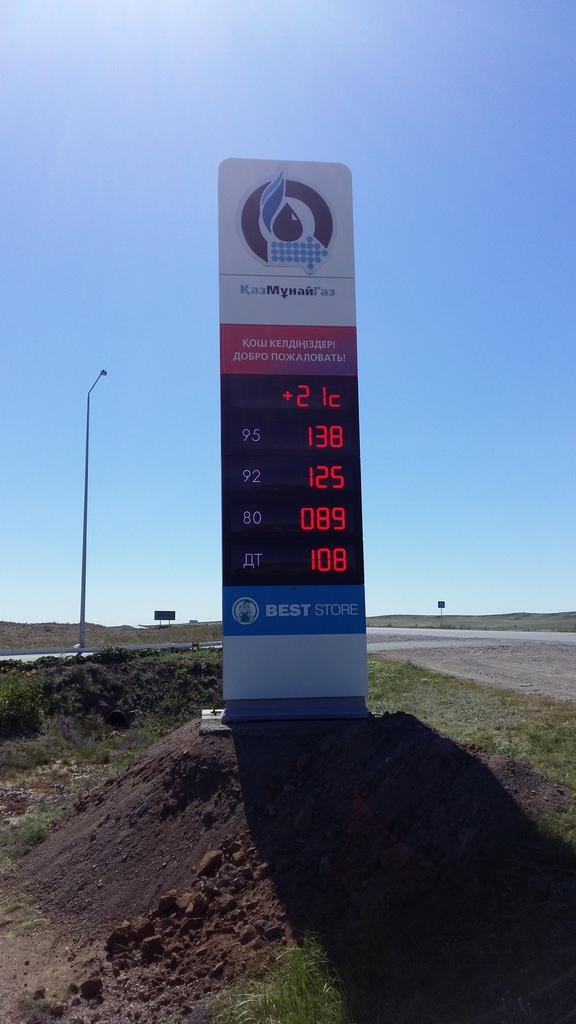 Сгонял в Казахстан. В советские времена город назывался Чарск, но видимо с точки зрения казахов звучало это как то не благозвучно, теперь город называется Шар, простенько и со вкусом. Границу пересекал в Веселоярске, по внутреннему паспорту. Заполняешь листок со своими данными и информацией куда едешь и зачем, на обратном пути отдаёшь этот листок пограничникам. Границу проходил быстро, ушло около 30-40 минут. Осмотр машины поверхностный, открыл все двери и капот, пограничник мельком глянул и всё. Для передвижения по Казахстану требуется местное ОСАГО, на 15 дней страховка обошлась в 1531 руб., страховку брал на Родине около границы. Курс валют 1 руб.= 5,3( 5,4) тенге. В магазинах и на рынках довольно выгодно закупаться, цены в среднем ниже на процентов 20-30, сравниваю с ценами Алтая. Дизтопливо около 20 руб. за литр. Фото цен на заправке выкладываю. Дороги шикарные, гладкие и прямые, дизельную 105-ку можно разогнать до аццкой скорости в 120 км/ч. В г.Семей (стар.рус. Семипалатинск) местные водители с сильно расшатанной нервной системой, на светофорах при малейшей задержке начинают сигналить и жестикуляцией выказывать своё недовольство в адрес простых русских парней из провинции. Ландшафт той части Казахстана где был меня угнетает, куда не глянешь степь.Скукота. Сильной жары не было, 20-25 градусов и ветерок. На обратном пути покатался по горному Алтаю - понравилось. Отлично развита (ну для России конечно) туристическая инфраструктура, везде гостиницы, турбазы, кафе на разные вкусы и уровень достатка плюс отличные дороги.