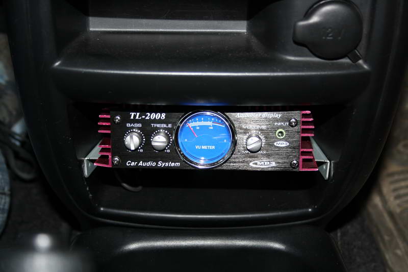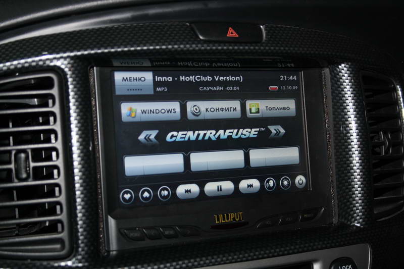 установлена материнка форм фактора miniITX с двухядерным Intel Atom 330, умный автомобильный блок питания M2-ATX, монитор liliput с сенсорным экраном. я не фанат автозвука, поэтому целью было просто найти маленький 4-х канальный усилок, что собственно и было сделано (но фото он розовый). фронд-энд оболочек для управления великое множество, но я остановился на Центрифуге.