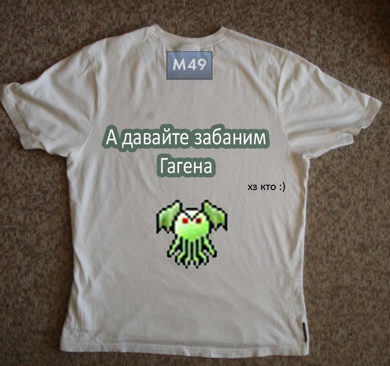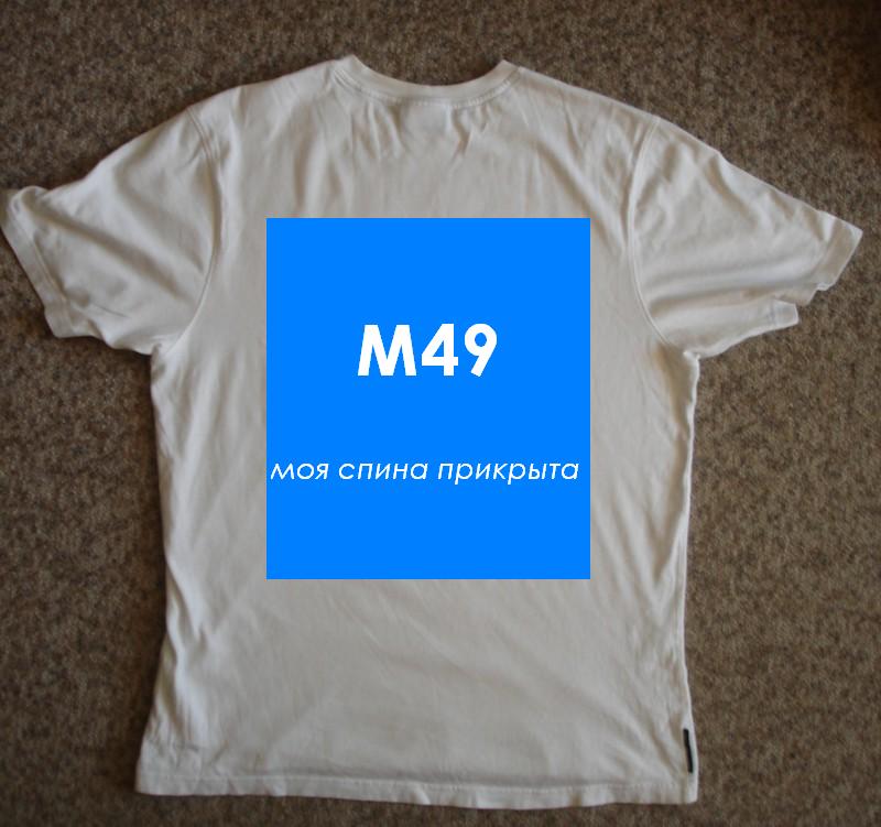 эмблема М49 будет на лицевой стороне, цитата - на спине. Мы сейчас обсуждаем спину