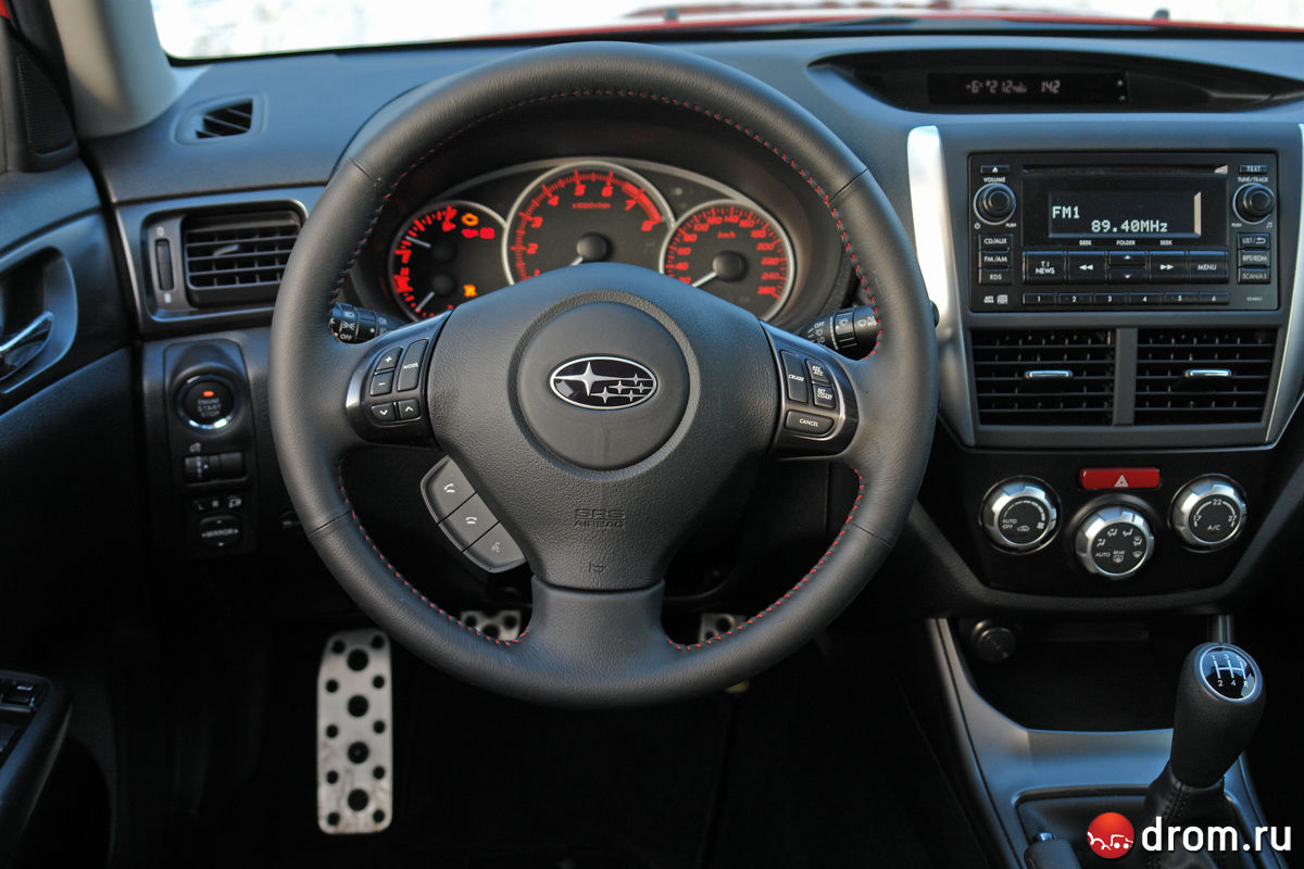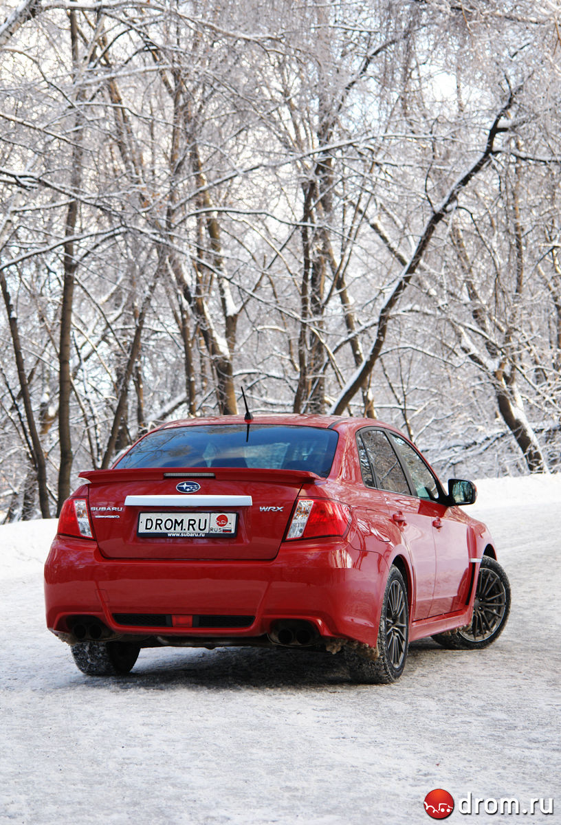 Тест-драйв обновленной Subaru Impreza WRX от Drom.ru. В хорошей форме 24.01.2011 | 15555 просмотров Вам нравится этот автомобиль? Да 1443 (88%) Нет 203 (12%) Источник: Drom.ru Автор: Леонтий Тютелев Фото: автора Поздней осенью 2010-го на полигоне в «Мячково» состоялась российская презентация обновленных Subaru Impreza WRX и WRX STI, о чем мы рассказывали. Во время короткого тест-драйва все наше внимание было нацелено, конечно же, на самую злую версию, а вот на WRX времени не осталось, хотя метаморфозы с машиной произошли весьма серьезные, и их хотелось оценить. На обновление WRX возлагались большие надежды. Дорестайлинговая версия в «узком» кузове во время первого теста произвела на нас если не удручающее, то весьма посредственное впечатление. Мягкая, с комфортабельной подвеской, хоть и мощным, но весьма скучным мотором. Абсолютно лишенная харизмы внешне (если не считать за ее проявление ноздрю на капоте). Помнится, обидно тогда стало за славную линейку средне-заряженных Импрез. Хорошо, что производитель свою ошибку понял и во время плановых обновлений постепенно привел машину к привычному знаменателю. Исправили именно то, что было нужно. Как в былые времена, WRX теперь делит с STI широкие кузова — это седан и хэтч. Ширина увеличилась на 5 см, в то время как передняя колея на 3,5 см, а задняя — на 4. Машина упирается в землю шинами на 17-дюймовых дисках, теперь покрышки стали шире на 1 см. Кузов с расширенными крыльями, безусловно, сделал облик WRX более привлекательным и агрессивным. В версии седан машина отличается от старшей спортивной сестры только маленьким спойлером вместо «этажерного» антикрыла. Ну, и колесики поменьше. Зато у WRX тоже есть эффектный разведенный по сторонам выхлоп со сдвоенными патрубками. Прихорошилась машинка, обновление пошло на пользу. Хотя на вещи можно посмотреть и с другой точки зрения — WRX вернулась к тому, какой была раньше. Настройки подвески пересмотрели еще во время первого обновления, которое датируется 2008-м годом. Новые пружины и перекалиброванные амортизаторы ужесточили ходовую примерно на треть. Тогда же японцы поколдовали над мотором. Мощность увеличили на 35 л.с. — до 265 «лошадей». Получил солидную прибавку и крутящий момент — если раньше было 320 Нм, то сейчас 343. Причем двигатель стал ориентирован на высокие обороты, максимальная мощность достигается на 6 000 об/мин (было 5 200), момент — на 4 000 об/мин (было 2 800). Тем не менее, время разгона до 100 км/час по паспорту увеличилось на 0,2 сек и составляет теперь ровно 6 секунд. Кстати, ровно столько же требуется на это упражнение и «автоматической» STI. А вот в салоне изменений не обнаруживается. Везде жесткий пластик. Из спортивных атрибутов только трехспицевый руль, спортивные кресла с логотипом WRX да педали с алюминиевыми накладками. Это аскетизм и продиктованная бюджетом скромность импрезовских спортивных салонов, какими мы всегда их знали. Некоторые вещи с годами не меняются. Зато двигатель заводится с кнопочки, а ключ не надо доставать из кармана! Хорошо хоть, что кнопка по-прежнему слева — дань автоспорту! 2,5-литровый оппозит просыпается с знакомым металлическим рыком. Салон наполняется приятной вибрацией. Вот с ней, мне кажется, бороться не стоит. Есть звук, а есть ощущения от мотора. То, как работает оппозитник на холостых, немного сотрясая салон, — приятно. Это его характерная черта, поэтому нужно воспринима