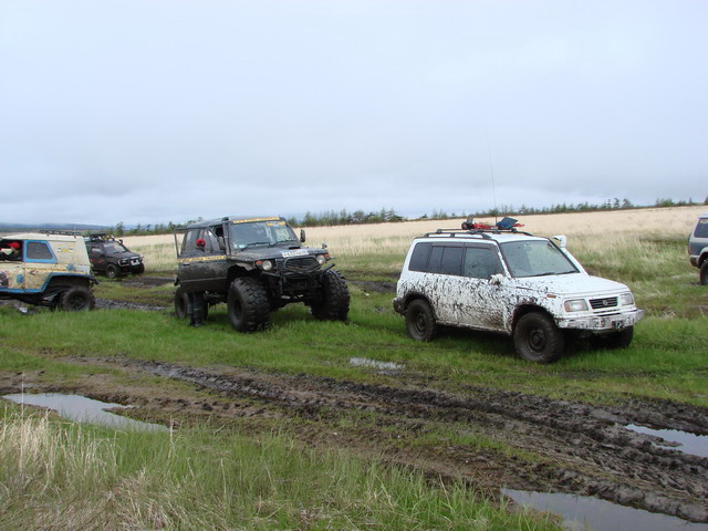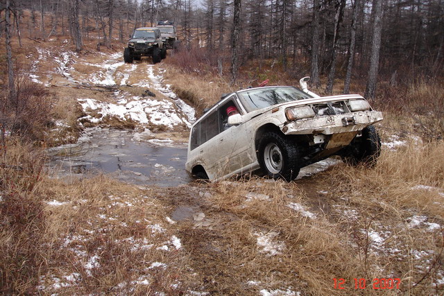 Приобрел я сей агрегат целенаправленно, для небольшой подготовки и дальнейших поездок в малодоступные уголки нашего края. Этим везунчиком оказался обычный (не Хели-Хэнсон, или Голдвин) 5-ти дверный Эскудо 1997г.в. (TD 01W) с ДВС 1,6л (G16A). Отъездил уже год и сделал какие-никакие выводы. Ну, во-первых, хотелось бы указать основные МИНУСЫ: 1.Полное отсутствие и даже намёка на какой-либо комфорт. 2.Большой расход топлива, относительно объёма ДВС (1,6). 3.Высокий уровень шума. 4.Очень низкая теплоизоляция. 5.Плохо заводиться при морозе свыше -20 С 5.Небольшой размер багажного отсека. 6.Тесноват, для человеческих особей с ростом выше 175 см и весом более центнера. Теперь ПЛЮСЫ: 1. Вес авто (1,2т) 2. Маневренность. 3. Полноценный полный привод, без межосевого диференциала (на некоторых моделях есть LSD редуктор заднего моста). 4. Простота конструкции. 5. Наличие рамы 6. Дешевизна расходных и запасных частей. 7. И самое главное, это его НАДЕЖНОСТЬ и неприхотливость. Читая все выше изложенное, любой разумный человек способен сделать для себя должные выводы. Моя точка зрения такова, что Эскудо - это класс автомобиля, где-то выше любого городского паркетника, но ещё не полноценный Жип. Однако довольно просто доводиться до состояния Жипа, с помощью болгарки, молотка и напильника. А так же с применением запасных частей как от других иномарок, так и от отечественных авто. Данный автомобиль ни в коем случае нельзя сравнивать с Хондой CR-V, HR-V; Тойотой RAV-4, или Ниссаном X-trael. Его "единомышленники" это брат Джимни, Сан-Янг Корандо и конечно Нива, которая и явилась стимулятором для создания Эскудо. Все это применимо к автомобилям до 2000 г.в.. О Последней модели Эскудо ничего не могу сказать, кроме того, что рама у них теперь гибридная и выглядит он достойно. Однако за такие деньги я бы лучше купил Сурфа, тогоже года выпуска. Все равно на них только по городу кататься Мой авто притерпел следующие изменения: Сначала был сделан 2" лифт подвески, с заменой задних амортизаторов, после чего вкатились колесья 235/75 R15. Это позволило несколько раскрыть его внедорожные качества, а так же изменить границы маршрутов. После, был снят родной передний бампер вместе с кенгурином и на этом месте появилась лебедка на 3т и цельно-металический бампер (толщиной 4мм). Долее последовала инсталяция Шнорхеля, а так же дополнительной защиты картера и переднего редктора. Сейчас в задний мост внедряется LSD редуктор. И, пожалуй, всё. Все эти изменения позволили мне неоднократно добраться без посторонней помощи до бухты "Светлой", так же на 18 плес р.Армань, оз.Чистое, оз.Мак-Мак и многие другие интересные места. Однако, после дурного влияния таких как ДЮЙМ и ему подобных, прийдется Эскудику притерпеть ещё некоторые изменения в конструкции, а именно Боди-лифт 3"-4" и примерить на себя колеса размером 33-14,5/15 -------------------- Главное в экстремальном отдыхе-вовремя заметить, когда заканчивается экстрим и начинается полная Ж@па!