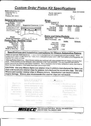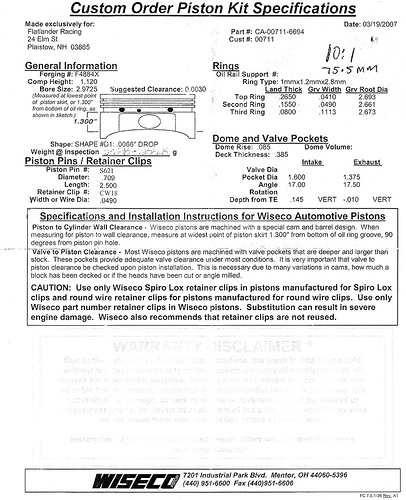 эти бумажки это спецификация по поршням Wiseco на Scion под СЖ 9:1 и 10:1, как видно рекомендуемый зазор в одном случае 0.0035 (0.0889мм), а в другом 0.0030 (0.0762мм).