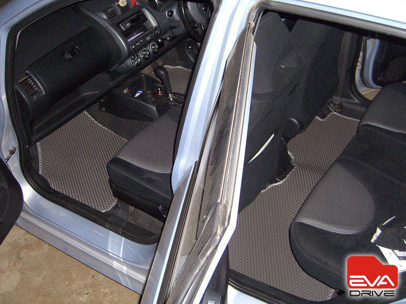 Да,по сравнению с ними мои-колхоз. Но они тоже с хорошего материала,на морозе думаю не подведут. На фотке место обвел,куда малые всегда наступают,когда залазят. Теперь оно закрыто. На багажник и салон сзади ушло 4 ковра. По деньгам-1200 р. В общем я доволен.