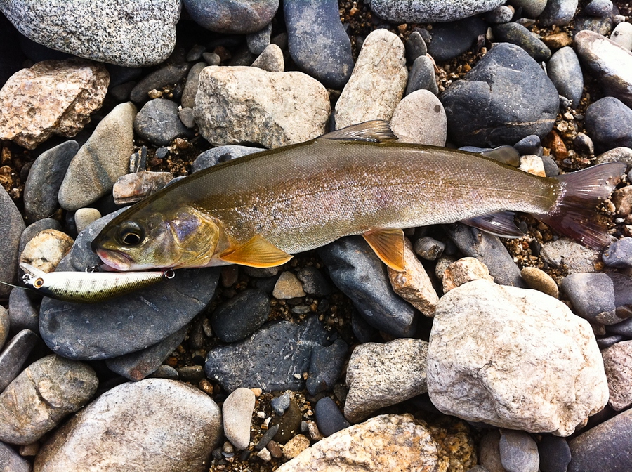 Красивейшая река, я Вам доложу. Расположена на юге Магаданской области. Богатая рыбой. Ехать до места рыбалки от города 4 часа чистого времени, а с переправой через р. Яна - как повезет. Чтобы успеть на первый паром, выехали за 4 часа до переправы. Выскочив на первый Арманский перевал, понял, что быстро доехать не получится - перевал в снегу, а недавно начавшийся дождь добавил еще и тумана. В общем соскользили мы с первого. На втором все было проще, но талые воды подрасквасили дорогу, а автотранспортные средства, снующие туда-сюда дорогу подразбили. Не толстым ковром повсеместно лежал снег... К переправе приехали за час до ее начала. Оказалось, что мы не одни такие умные - там уже стояли две машинки, а по реке баражировали нерпы. Значит рыба - лосось в реку еще продолжает заходить. Расположились мы с комфортом, потрескали семечек жареных и дождались парома. Как и предчувствовали - особых правил в переправе не было: у кого нервы прочнее - тот и прав, но все-таки было спокойней, чем в мою поездку летом. На втором пароме переправились и рванули в пос. Талон, где забрали лодку. Закидали вещи в нее и вперед, вверх. Погода сгущала тучи, ну и слегка нам проверила на промокаемость. Дойти успели засветло. База в снегу... За годы поездок у нас сложился ритуал - приезжая на место мы всегда готовим борщ. Такой чтобы аж ложка стояла... Этот раз не был исключением. Борщ получился наваристым и всеми был оценен по достоинству Утро. 7 часов. Поднялись. Перекусили. В лодку и вперед. Зяяяяааабкооооо!!! Но в подобранной одежде и термобелье - очень комфортно. А как хорошо в Rapala ProWear! Не продувает. Не надо думать куда садиться - сел и все, а мокрое или нет - не важно. Вот только ботинки постоянно надо сушить... В одной из поездок они мне позволили остаться сухим - провалился по пояс в болото около озера. Лед меня не выдержал.. Был бы в сапогах - пришлось бы сушиться, а так просто выбрался из болота Накануне в коробочку из-под тройников набрал воблеров, положил несколько микроколебалок, а в сумочку заложил колебалки (в основном Daiwa Masau) и поместил туда крупный воблер Smith Cherry blood MD75 в цвете 04 . С собой, конечно же, взял ультралайт. Было решено забраться повыше, а затем скатываясь останавливаться на плесах и проверять на них рыбу. Вода чуток мутновата, но дно на 2 метрах просматривается. Забрались километров на 15. Ничего. Ниже. Ничего. Еще ниже - снова никак. Так скатились почти до базы. Стали километрах в 2 от нее. Никак. Странно... Предположил, что днем рыба вжимается в дно. Уронил колеблющуюся блесну Smith Buch SP на 10 г на дно. Повел. О! Кто-то ее толкает! Повторяю и вот перед нами кунджа. Очень хорошо. Повторяем эксперимент. Все отлавливаются. В голубом небе здоровенными косяками с криком проносятся белоснежные лебеди. Прощаются с Северо-Востоком до следующей весны. Клев прекращается. Ставлю улавливателя платной форели - Smith Camion DR цвет 21. Глубоко он убегает, аж до 1,8 м. Этакий жучок плывет под водой, вихляет весь. И конечно приводит рыб. Несколько поклевок были прям у поверхности. Даже заглубляться не успевал, а хариус на нем уже едет. Снова заканчивается клев. Рыба крайне вялая. Поклевки словно прикосновения. И вновь смена приманок. На этот раз достал Smith Still цвет 11. Каково же было мое удивление, когда он стал приносить рыбу. Проводка - любая. Слегка отловились. Солнце - к закату, мы - на базу. Утро субботы было мороз