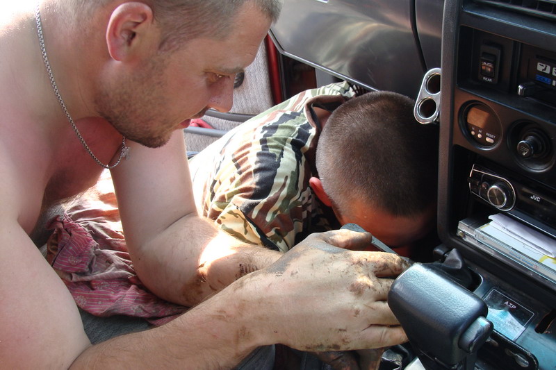 И вот после недолгих сборов в обед третьего августа всоставе двух сафарей на 42 дизелях в 60-ых кузовах, один атмомеханика 33"второй турбоавтомат стоковые колеса, и команда 4 человека и собака выдвинулисьна север. По плану первая ночевка должна быть на речке Гербе, наОмсукчанской трассе. До нее доехали совсем без проблем, пыли много не было ижара особо не донимала. И мы не спеша к вечеру докатили до места стоянки.Расположились и Владимирыч поймал первую рыбку на ужин Ну а дальше был первый праздничный ужин сон и с утра кто то,попив чая, а кто то, похмелившисьвыдвинулись дальше к нашей цели. Дорожники молодцы, дорогу сделали хорошую…нопыльная шопипец...Наша скорость была около 80 км/ч, но попутные фуры тормозилиее до 40-50, потому что в пыльной мглеобогнать их не было никакой возможности, так не спеша добрались до Колымы. Тампередохнули и двинули дальше. Пытаемся приблизится к попутному Камазу жара и пыль становились только хуже. На Бурхалинскомперевале Турбосафарь закипел, жара стояла за 30. Остановились около сворота на Мяунджу, от Магадана отошлина 700 км, федералка уходит прямо, а намсворачивать налево от цивилизации на Старую дорогу, вдали белел многоэтажкамиброшенный Кадыкчан. Перекусили тушенкой и двинули дальше, было уже около 9часов, а ночевать по плану должны встать у метеостанции Эмтегей, до которойбыло еще больше 30 км по Старой трассе. За 2 года этот участок дороги не ухудшился, а наоборот сталболее накатан и мы попали с самую малую воду, там, где раньше было по капот,сейчас максимум по колесо Самое опасное было напороться в луже в бревно, так чтопроходили их максимально медленно. Через полтора часа докатились до метеостанции Эмтегей, ирасположились на косе. На этом месте решили провести 2 ночевки. Место достаточно оживленное, живет абориген Андрюха, останавливаютсястаратели, и рядом с нами встали трое Сусуманских мужиков на Урале. В общем, отдых удался, и с погодой повезло Налим горячего копчения был просто изумителен Полдник дикого колымского человека Но надо ехать дальше, и позавтракавши выдвинулись. Перед своротом на Адыгалах встретили Намцев на 3-хмотоциклах и 120-ый прокачанный прадикподдержки. Бедные немцы, на улице +30, а они запакованные в свою амуницию, чтоодни глаза видны. Первый вопрос от немцев был типа почему вас комары некусают…на что Стас пошутил « наши комары своих местных не грызут» Продолжение следует... -------------------- Какой смысл покупать машину, чтобы разъезжать по асфальту? Там, где асфальт, ничего интересного, а где интересно, там нет асфальта.