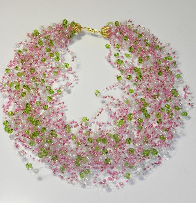 12 видов бисера, бусины проволочные хенд-мейд, ракушки с трех морей (Черное, Красное и Охотское). Очень пушистая (51 нить). |