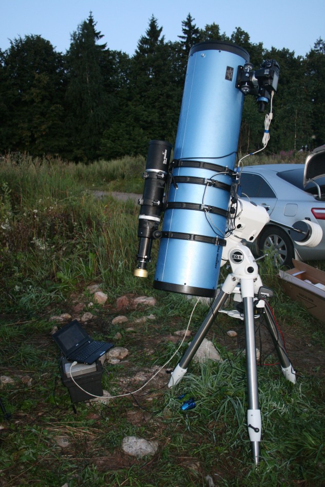 Темновато. Но я так понимаю, у него экваториальное крепление, или как оно называется, и моторчики всякие - так что он искомый объект не теряет из виду?