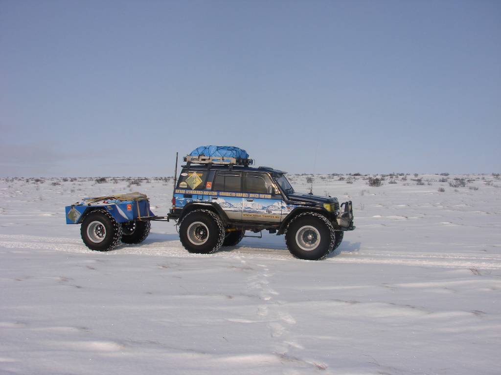 Для вас ОФФ-Роад начинается за МКАДом? Поймите ДОРОГ ТАМ НЕТ!!! Возле райцентров небольшие зимники километров по 50 И ВСЁ! У ВАС ОШИБОЧНОЕ ВПЕЧАТЛЕНИЕ СЛОЖИЛОСЬ! Какие нафиг цепи? Зачем они в пухлом снегу???? Даже тот, что на фото, спустившись, полз на лебёдке иногда в пухляках! На 33-35 вы просто утонете в 5-10метровом сугробе. Немцы ссылка доступна только зарегистрированным даже на 40-вых колёсах не прошли по Чукотке. У меня есть комплект Маттраксов 105М1А1 под 5-ти шпилечную ступицу. Могу уступить... Заправка? Вы после Омсукчана это слово выкиньте из лексикона на ближайшие 2000 км. Мы в навигацию закинули топливо в посёлки. И всётаки на себе тащили больше тонны соляры! Нам повезло с погодой! Мы в пурге не стояли, двигались постоянно! А ведь могли и встать на неделю-другую, если бы что-то подломалось! На бензин ТАМ не расчитывайте вовсе!!! Его ТАМ просто нет!!! Если кто и приберёг для себя с навигации, то цена доходит до 150р\л. Но это речь о 2-3-х бочках. Тоннами никто не хранит. Реки Камчатки из-за теплого климата встают очень поздно, а иногда и вовсе не перемерзают. -------------------- |