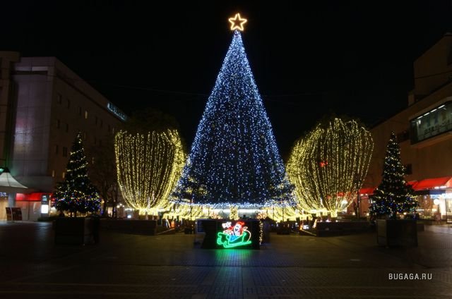 Новый Год в Японии Новый год в Японии - это многодневный ритуал. Японцы довольно суеверные люди, поэтому, чтобы следующий год был, по крайней мере, не хуже предыдущего, надо встретить его как положено. Съесть определенный набор продуктов, помолиться кому следует - и все будет хорошо. В первые секунды Нового года следует засмеяться - это должно принести удачу. Чтобы счастье пришло в дом, японцы украшают его, точнее входную дверь, веточками бамбука и сосны - символами долголетия и верности. Сосна олицетворяет долголетие, бамбук - верность, а слива - жизнелюбие. Цитата Вот это кадоматсу. Ставится по обе стороны от входа в дом снаружи или прямо напротив входа в дом внутри (в генкан - японской парадной прихожей). Согласно поверью, должна привлекать в дом удачу и деньги (последнее - особенно актуально везде). Шименава - специальным, очень хитрым образом, скрученная рисовая солома с обычным набором японских праздничих бирюлек из красно-белой бумаги и золотых нитей и все того же мандарина-микана. Вешается снаружи дома, над входом. Вся сила - в рисовой соломе, которая не пускает в дом всякую нечисть. Шименава можно легко найти в любом синто-храме в Японии или около каких-либо святынь. Там это массивнaя и весьма заковыристо оформленная конструкция. А в жилом доме этот пучок перекрученной рисовой соломы появляется обычно только на Новый Год. Особо продвинутые вешают маленькие шименава на решетку радиатора автомобиля. Чтоб, значит, и туда нечисть какая не залезла. Надо думать, хороший способ гарантировать долгую жизнь без инциндентов своему железному другу. Одним из популярных новогодних украшений считается "мочихана" 餅花 - комочки все того же теста из мочигомэ белого и розового цвета, налепленные на ветки ивы или другие гибкие прутики. Это такая имитация цветов сливы-умэ, которые раньше также были обычным украшением дома к Новому Году. Но после принятия грегорианского календаря, празднование Нового Года сдвинулось на месяц раньше, когда для цветов сливы еще слишком рано. Вот и появилась имитация. Но прижилась. Мало того, в Киото "мочихана" используется как традиционное украшение для причесок майко-сан под Новый Год вместе с прочими символами наступающего праздника. Еда на столе - тоже символическая: длинные макароны - знак долголетия, рис - достатка, карп - силы, фасоль - здоровья. В каждой семье готовят новогоднее угощение моти - колобки, лепешки, булки из рисовой муки. Мочи делают из специального риса, мочигомэ. Это вторая по значимости разновидность японского риса. Из этого мочигомэ делают практически все традиционные японские сладости. Но под Новый Год основное применение мочигомэ - плюшки из рисового теста "мочи". Эти две плюшки мочи разного размера, сложенные одна на другую, и украшенные сверху японским цитрусом "даидаи", являются основным украшением японского дома перед Новым Годом. Вот так примерно выглядит это украшение, которое называется "кагамимочи". Перед Новым Годом считается совершенно обязательным проведение генеральной уборки. Причем, везде, где только можно: дома, ясен пень, в обязательном порядке, в офисе, во дворе. Отдать по возможности все долги и разобраться со всеми делами. Чтобы Новый Год был по-настоящему новым. Уборка окружающего пространства в Японии считается необходимым условием для просветления мозгов. И новогодний бог т