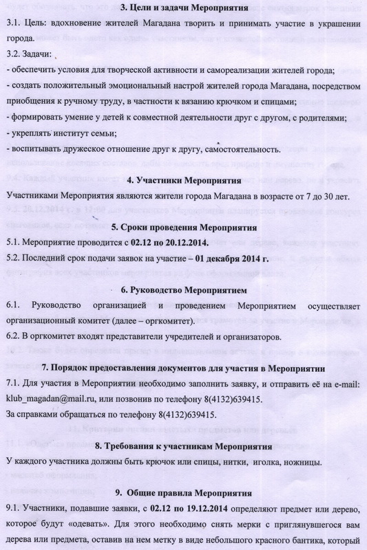 Городское мероприятие вязаный стрит-арт "Новогодние мотивы". Условия указаны в сканах, со слов знаю, что можно участвовать и тем, кто по возрасту вроде как не подходит.
