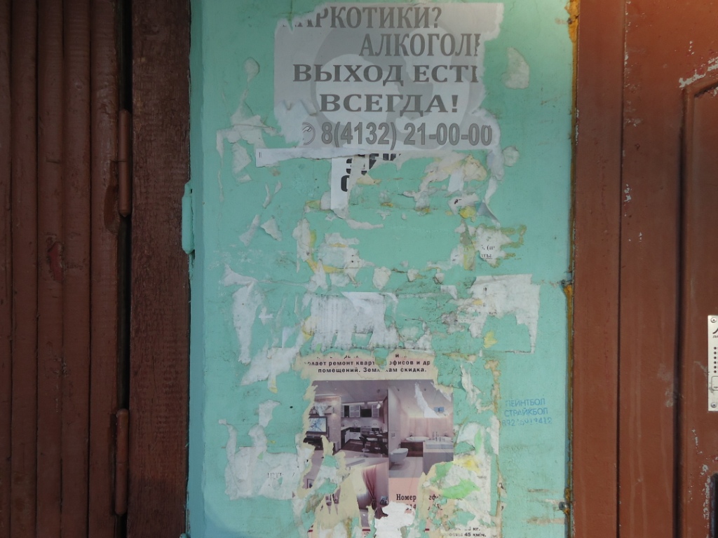 Перед вами типичный Российский подъезд (на данных фото - Магаданский, мой). И все эти неотдираемые стены - заслуга доблестных работников высоко интеллектуальных профессий - сантехники, электрики, ремонтники, грузчики (как правило). В местную газету обьявлений - дать обьявление услуг стоит 500 рублей в неделю (в рамке), а они ходят - тратят хрен знает сколько времени, бумаги, клея, сил...... и поганят фасад подъездов !!!!! Я уже как год делаю очень просто: завидя очередное обьявление на своём подъезде - отрываю его с клочьями (к чему призываю и всех остальных, дабы ни у кого желание не появлялось клеить). А если Вы нанимаете для расклейки - молодёжь, то вбивайте им в бошку как это надо правильно делать (везде есть вход в подвал - в основном деревянная дверь, на неё замечательно крепится обьявление с помощью КАНЦЕЛЯРСКИХ КНОПОК, и никто его не тронет). Самое главное - что рано или поздно вместо своих оплачиваемых шабашек Вы будете бесплатно ремонтировать подъезд !!!!!! Закон о незаконной рекламе есть, правда я его ещё ни читал, и в какие инстанции обращаться не знаю, поэтому если кто-нибудь владеет такой информацией - то напишите для Всех пожалуйста. Спасибо за внимание. |