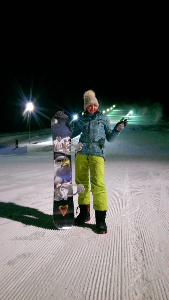 Вот и я присоединилась к этим безумцам - катающимся зимой с двумя пристегнутыми ногами к доске))))
