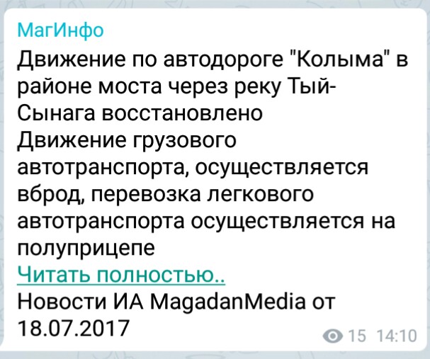 Проезд по ФАД «Колыма» открыт для всех ви... 19.7.2017, 14:38