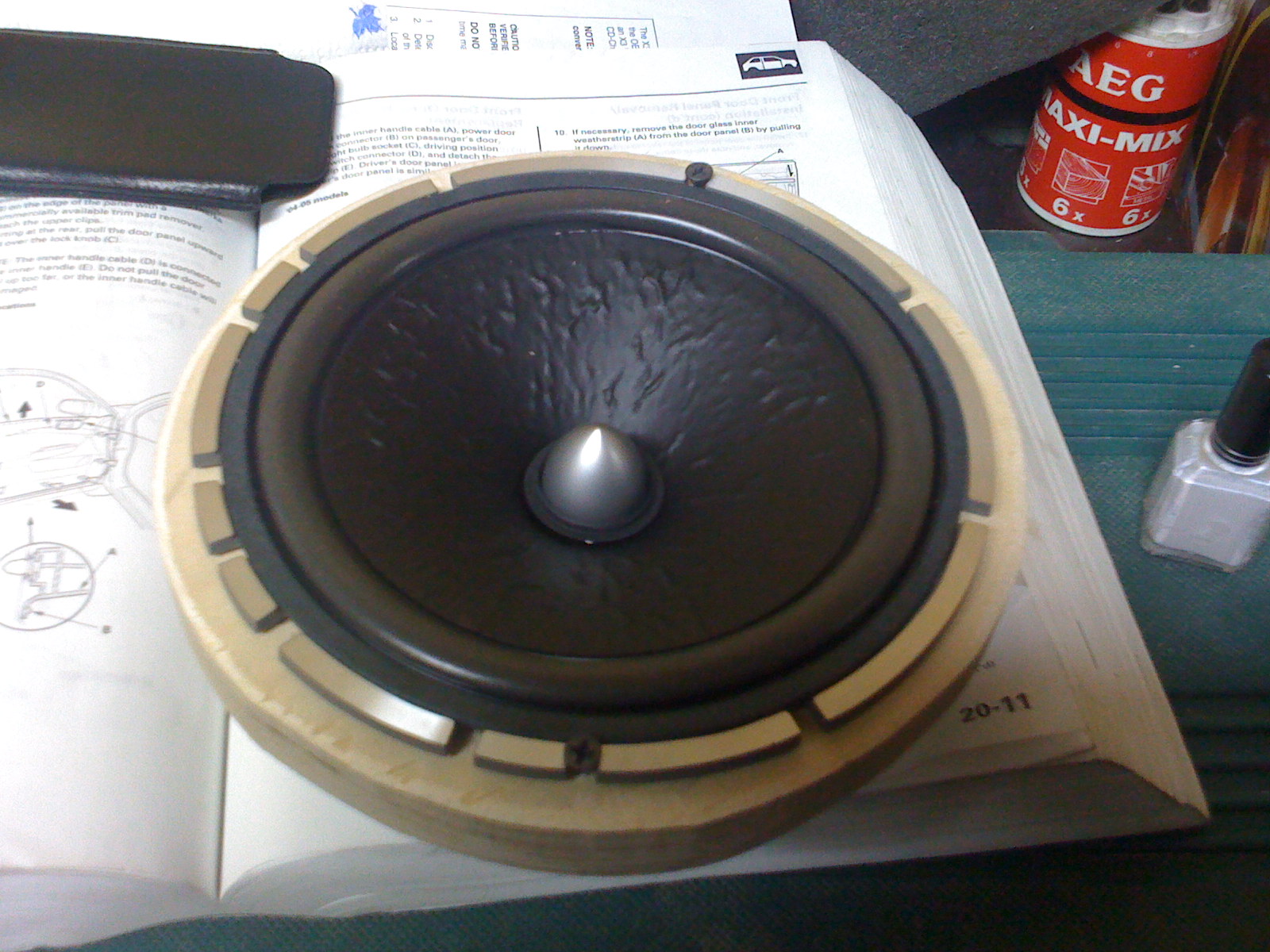 Огромное спасибо за помощь и участие камрада Kaktus`a, неоценимую консультацию специалистов из ателье SolarAudioStyle. В результате распилилась дверь, выпилилилсь кольца из фанеры, все примерилось - расстояние до стекла примерно 5-6мм, если не больше. -------------------- [Team Мирный Танк] [Guardians Of The Blind Team]