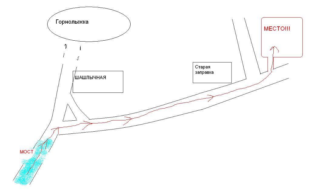 ...помимо шашлыков там же можно и в футбол погонять и в бадминтон ну и кому что еще в голову прийдет! Абсолютно согласен... и мяч далеко не улетит... и бесплатно и на свежем воздухе... единственная проблема это погода.. если дождь не прекратится, то с футболом не повезло... прикладываю схему.. вроде все понятно... на ГОРНОЛЫЖКУ не едем.... поворот сразу полсе большого моста... там треугольная развилка... -------------------- Съешьте с утра живую жабу, и ничего худшего в этот день с Вами уже не случится.