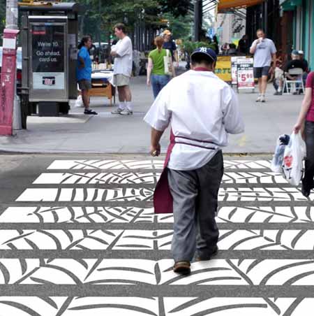 Как обратить привлечь внимание пешеходов к «зебрам» и постараться чтоб водители снизили перед ними скорость? Совершенно необычный способ придумал канадский художник Питер Гибсон (Peter Gibson). Он взглянул на «зебры» (и дорожную разметку в целом) несколько иначе, за что местная полиция, конечно, предъявила ему обвинение в 53 случаях порчи разметки. Но все обошлось благополучно и сейчас произведения Гибсона может увидеть каждый в городе Монреаль. Другие необычные «зебры» созданы братьями Давидом и Габриэлем Адриано (Davide and Gabriele Adriano). Идея их необычного проекта — создать пешеходные переходы, которые были бы частью города и характеризовали бы именно его культуру. Факт — такие «зебры» привлекают пешеходов и делают водителей более внимательными. -------------------- ![]() |