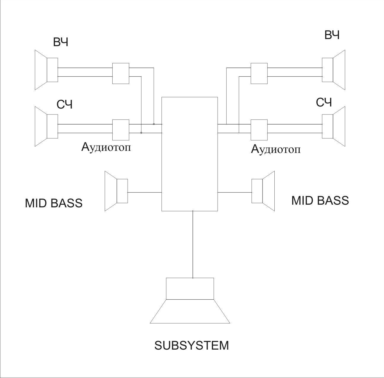 Имеем: - компонентная акустика Арт Саунд "Аура" без родного кроссовера; - двухполосный кроссовер "Аудиотоп", раздел 3,5 кГц; - купольные серединки "Морель" CDM-54, рекомендуемые частоты воспроизведедния от 600 Гц до 7 кГц; - пятиканальный усилитель "Хеликс", два канала можно включить в полосовом режиме, частоты от 50 Гц до 4 кГц, два других - без него, частоты те же. Вопрос: кто какие варианты подключения посоветует? |