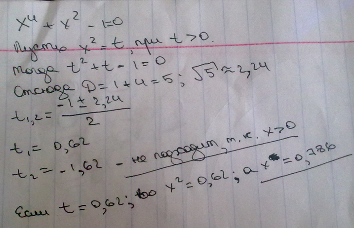 Rasputin Начало точно такое будет: х4+х2-1=0, а дальше как ... 29.4.2010, 11:23