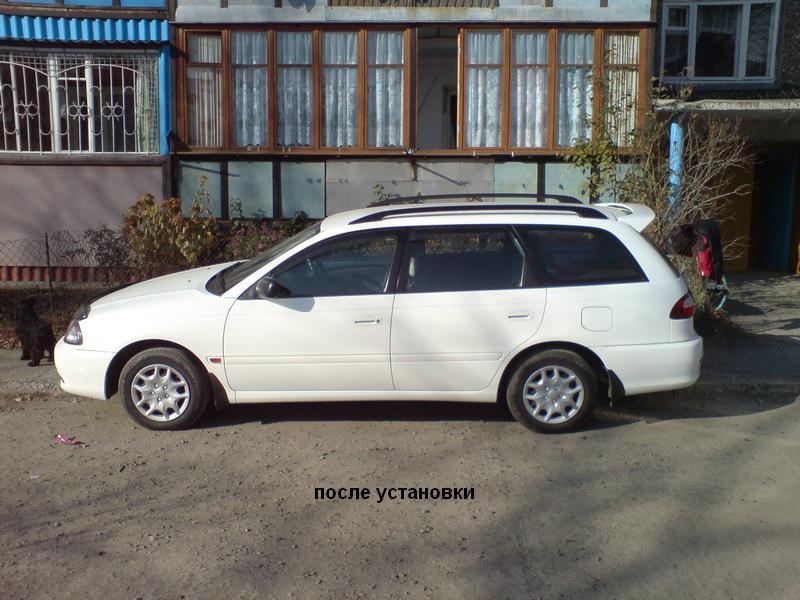 взято с ссылка доступна только зарегистрированным ============================================================================ Приветствую всех! Темой данного топика будет установка спойлера на неспойлерованную Калдину в 210-м кузове. Почему решил поставить спойлер? Во-первых, не нравилась откровенно овощная задняя часть, а если смотреть сбоку, то вообще казалось, что силуэт просто напросто не завершён! Во-вторых, это практически постоянно грязное стекло багажной двери. НЕМНОГО ТЕОРИИ Какие собственно подводные камни могут возникнуть при установке? А камень всего один – СТЕКЛО! На спойлерованных Калдинах верхних углов заднего стекла просто нет. Они отрезаны, а под каждым из них по одному отверстию для крепления. На неспойлерованных стекло цельное, что и затрудняет правильную установку. С двумя верхними креплениями никаких проблем. Просто сверлим и прикручиваем. А вот с нижними(которые под стеклом)…. Скажу сразу, рассматривал все, даже самые фантастические предложения и варианты, потому как нигде ничего по установке нет. И по моим данным никто раньше этого не делал. Варианты: 1. Сверлить стекло каким-нибудь алмазным свёрлышком. Не вариант! Во-первых, на спойлере закреплены втулки с внутренней резьбой под нижние крепления. В диаметре примерно 10мм. А где найти такое сверло? Во-вторых, около них имеются плоские направляющие, которые упираются в железо двери. Отсюда следует вариант 2! 2. Отрезать уголки стекла. Если это удастся, то считайте спойлер у Вас уже стоит, НО! Стекло КАЛЁНОЕ! Был у меня печальный опыт резки такого. Начинаешь резать, а оно просто рассыпается! Так что тоже не вариант. 3. Замена стекла. Для меня дорого. Если были бы деньги, попробовал сначала вариант 2, если бы не получилось купил стекло от спойлерованной и всё. ;-) 4. Крепим верхние как надо, т.е. сверлим отверстия прикручиваем гайками. А нижнюю часть спойлера крепим к стеклу на двухсторонний скотч. Я пошёл по 4, но с доработками. ЧТО СДЕЛАЛ Я При примерке выяснилось, что в двери (багажной) уже размечены точки под отверстия. Имеются два для верхнего крепления и два для нижнего (как раз под стеклом). Так как стекло решил не трогать, то подготавливаем нижние места крепления на спойлере. Срезал те самые втулки и направляющие(см. пункт 1 выше). Далее просверлил верхние отверстия. Сначала просверлил правое, т.к. слева пятно где должна быть дырка оказалось шире и выбрать нужное место было сложнее. После, прикрутил верхние болты (вмонтированы в сам корпус девайса) и затянул. Теперь верх плотно лежит на двери. Кстати немного промахнулся с отверстиями миллиметра на 3 в правую сторону, хотя кто после установки смотрел не заметили. Далее смотрим нижние места. Между ними и стеклом зазор 7-8мм. Я решил сначала выровнять поверхность на спойлере перед наклейкой скотча, параллельно заполнив зазор. Использовал для этого шпатлёвку для пластмассы от Hi-gear. Двухкомпонентная пластилиновая субстанция, в форме сосиски))) Разделил пополам и размял до однородной массы. Затем налепил на нижние края спойлера с обоих сторон. Поставил спойлер на место, затянул верхние болты и придавил низ к стеклу. Делал это для того чтобы шпатля приобрела изгиб стекла и выровнилась по нему. Пока шпатлёвка не застыла, ровняем её края. Причём не путём отрезания лишнего, а как бы трамбуя её каким-нибудь плоским предметом. Станет намного аккуратней))) Сохнет всё эт