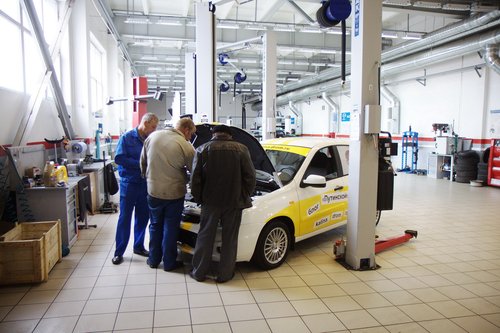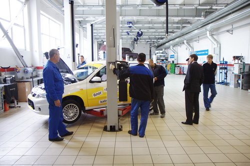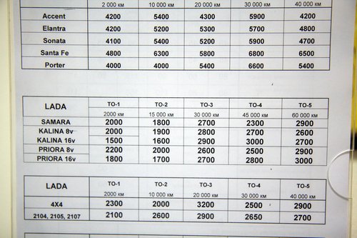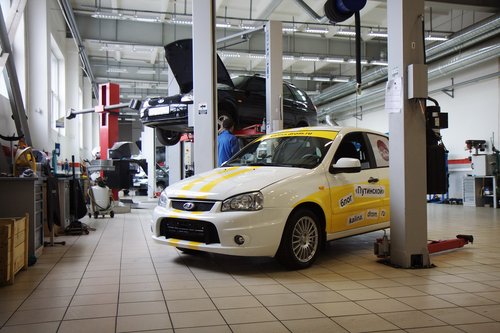 Две тысячи двести восемьдесят три километра пролетели быстро — за три дня путешествия, и вот мы уже отправились к дверям курганского дилера АвтоВАЗа. Сервис для ТО-1 выбирать даже не пришлось — наш форумчанин Алексей Antropoff работает в местной «Ладье» инженером по гарантии, он звал нас на проверку с самого начала пробега. Помимо регламентных работ, предполагалось устранить следующие заявленные неисправности: Гул сзади. Писк спереди. Неправильная работа стеклоомывателя. Неисправный дистанционный ключ, неактивированный иммобилизатор. Работа магнитофона после отключения двигателя. Отсутствие крепления упора капота. [attachment=68239:211976.jpg] В теории, маленький ключик с красной меткой нужно хранить дома и никому не показывать, но в Москве нам про это никто ничего не говорил. Про неработающий иммобилизатор и дистанционный ключ тоже молчали. Помыли машину, и началось... Сложилось впечатление, что мы в вазовский сервис приехали на Феррари — посмотреть на диковинный «спорт-кар» подошел чуть ли не каждый сотрудник ремзоны. Народ внимательно изучал особенности авто, дивился, спрашивал про особенности комплектации. Из-за этого повышенного внимания к нашему скромному хэтчбеку процесс ТО-1 затянулся [attachment=68240:212182.jpg] Все по технологии, вытяжка для выхлопа. [attachment=68242:211978.jpg] Сотрудники сервисного центра изучают особенности спортивной комплектации. [attachment=68243:211980.jpg] Поглядеть на Спорт пришел даже местный дворник (слева в кепке [attachment=68244:212180.jpg] К осмотру подтянулись и менеджеры Загнали машину на подъемник, дабы зрители воочию лицезрели спортивную подвеску. [attachment=68245:211982.jpg] Калине достался первый подъемник — спасибо Алексею, так фотографировать было удобнее. [attachment=68246:211984.jpg] «Да зачем же они ее так крепят?» (с) кинофильм "Формула любви". [attachment=68247:211986.jpg] Защита смотрится внушительно, но по факту — очень тонкая. На дороге к Омску пробивались с ее помощью через щебенку, надо будет глянуть, что там осталось. [attachment=68248:211988.jpg] [attachment=68249:211990.jpg] Два крепления бампера отсутствуют. [attachment=68250:211992.jpg] Передняя подвеска. [attachment=68251:211994.jpg] Задняя зависимая подвеска. [attachment=68252:211996.jpg] Выхлопная трасса неплохо смотрится на черном фоне. Пока не ржавеет. [attachment=68253:211998.jpg] Фирменная насадка, есть даже логотип АвтоВАЗа. [attachment=68254:212000.jpg] Тот самый колдун [attachment=68255:212002.jpg] Пластиковый бензобак впервые стали использовать на Калинах. Впервые на АвтоВАЗе, естественно. Для начала разобрались с регламентными работами — заменой масла и фильтра. В соответствии с первой заповедью маслодегустаторов («Тойоте — тойотово, Хонде — хондово»), решили залить в вазовский 16-клапанник что-нибудь российское. Т.к. фирменного АвтоВАЗовского масла не нашлось (и не факт, что оно вообще существует), то выбрали Лукойл — полусинтетика 5W40. Фильтр — Салют, произведен в г. Самаре. [attachment=68256:212005.jpg] Набор для ТО-1 [attachment=68257:212009.jpg] Промывка двигателя с точки зрения маслодегустатора — злейшее зло. [attachment=68258:212007.jpg] Масло вроде как довольно прозрачное. Говорят, с завода идет с пемзой. После слива старого масла почистили двигатель промывочной жидкостью МПТ-2М от Волга-Ойл. На мой вопрос «Зачем промывка?» привели следующие доводы: — база и пакет присадок у масел разные; — согласно разведданным, на заводе в масло добавляют пемзу, ибо обкатка. Ну да ладно, надо промывать — значит надо. Пройдемся по списку заявленных пробл