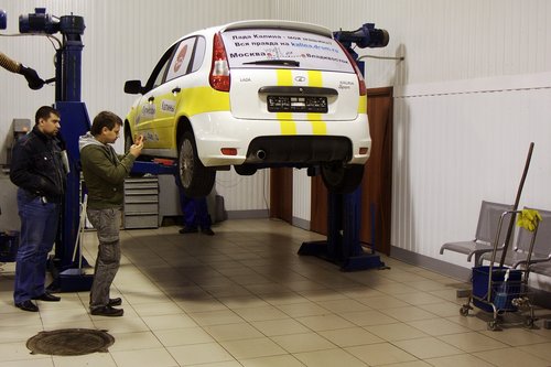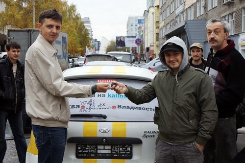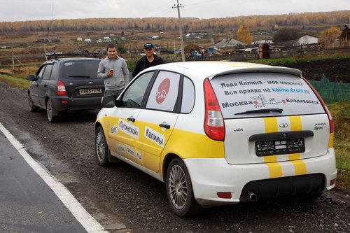 Погостить в Новосибирске удалось недолго — пару вечеров да день, но было классно! Увы, сегодня утром, практически не отдохнув, пришлось стартовать в сторону Красноярска — тут нас ждет испытание на гоночной трассе Красное Кольцо, откладывать которое — не вариант... А пока о буднях нашего перегона. И снова — сервис! Перед поездкой в Красноярск решили в очередной раз показать машину официалам, чтобы идентифицировать задний гул, проверить тормоза, выставить развал/схождение (в Кургане немного напутали) и починить дистанционный ключ. Благодаря Алексею (еще раз спасибо!), мы вне очереди попали в один из салонов АвтоВАЗа, и начались проверки. Здесь проходят государственный технический осмотр, мы заехали для проверки работы тормозной системы. Для начала испытали тормоза — в Кургане продвинутый вибростенд утверждал, что спереди у нас разные тормозные усилия, да и увод не в порядке. На сервисе в НСК нашлась специальная линия для проверки машины на соответствие требованиям ГОСТа. Прокатились с мастером, полюбовались на итоговые показатели — все в норме. «Не у каждой иномарки такие хорошие тормоза», — поделился работник сервиса. Что ж, это отлично, пошли дальше. Тормоза соответсвуют требованиям ГОСТа, показания передних. Показания задних тормозов и ручного тормоза. Быстренько заехали на стенд для выставления развала/схождения, я показал очередному мастеру требуемые показатели, минут за 15 управились. На стенде для установки правильного развала/схождения. Проходящие мимо сотрудники сервиса всегда засматривались на нашу детку Показания до проведения работ. Развал/схождение и «метод линейки». Показания после проведения работ. После восстановления геометрии ходовой попросили прокатиться по территории, поверить, все ли в порядке. Сел, поехал, вдруг слышу — ОН! Долгожданный гул вернулся Но полагаться только на слух инженер не стал, и машину отправили на подъемник. Во второй раз внимательнейшим образом проверили ходовую — ничего не люфтит, все ровненько, держится крепко. Ну здорово, значит можно ехать дальше по трассе и не сильно переживать. Проверяем подвеску. Гарантийный инженер заглянул под Калину Последним, но самым сложным оказался бой с дистанционным ключом — он отказывался работать. Разобрали дверь, крутились, вертелись, советовались, удивлялись и т.д. В итоге заменили замок, смазали пипку «вэдэхой» — вроде заработало. По кнопке дверки стали закрываться/открываться, и что самое главное — теперь без участия клаксона Починка замка заняла больше всего времени. Самое простое — разобрать, самое сложное — найти причину поломки. Обшивку с этой двери снимали уже не раз. Итого, по проведенным работам: проверили тормоза, выставили развал/схождение, проверили ходовку, починили дистанционный ключ путем замены замка водительской двери. Что-то начинает отваливаться. Установка чего-то-там в «Семерку». Драговая Supra команды EXE отдыхает на заднем дворе сервиса АвтоВАЗа. Итого по денежным затратам: 0 рублей (все по гарантии, а развал/схождение — как подстраховка курганского сервиса, который немного ошибся — взаимовыручка, в общем). Зимняя резина Мы думали, что купить зимнюю липучку на наш спорт-кар будет несложно, но типоразмер оказался невостребованным... В итоге при помощи Эдуарда (Edd из Академа) мы приобрели комплект шин абсолютно неизвестного 