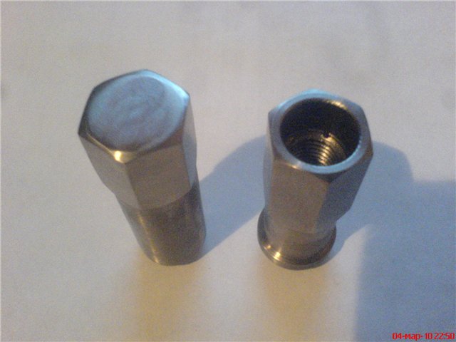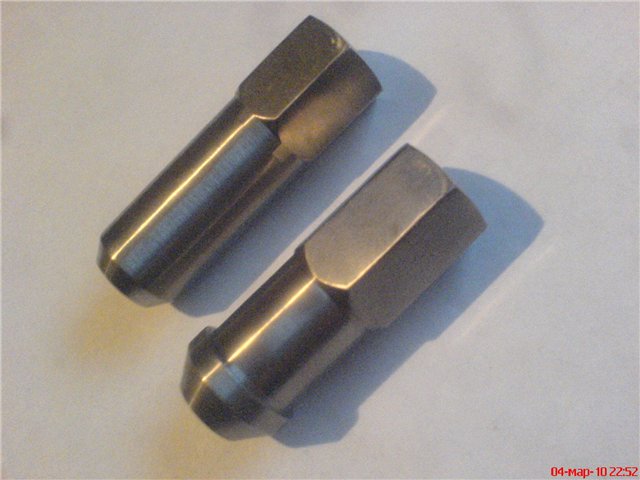 Остановись. Первый раз слышу про такие колёсные гайки. ан нет, есть такие, обычно это говнокитай, бо нормальные пацаны берут другие. Есть одни ребята, точат в москве гайки из титанового прутка, комплект 20ти гаек 3800р. марка титана ВТ1-0 Судя по посту титан они этот где-то натырили, отсюда такая невысокая цена... А вообще, в старой школе продавались гайки, там на упаковке бульдог нарисован, вот те конечно не сильно блатные, но вполне себе нормальные и то не говнокитай. на фотках выточенные гайки из титанового прутка... Сообщение отредактировал Maledict - 12.10.2010, 0:34 -------------------- [Team Мирный Танк] [Guardians Of The Blind Team]