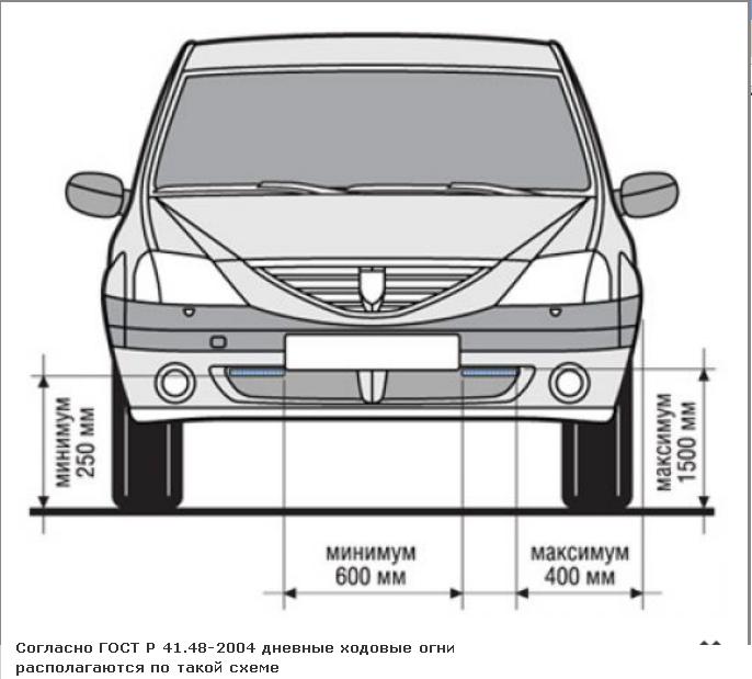 ПДД 11Запрещается эксплуатация: — автомобилей, автобусов, автопоездов, прицепов, мотоциклов, мопедов, тракторов и других самоходных машин, если их техническое состояние и оборудование не отвечают требованиям Перечня неисправностей и условий, при которых запрещается эксплуатация транспортных средств (согласно приложению); 3.1 Количество, тип, цвет, расположение и режим работы внешних световых приборов не соответствуют требованиям конструкции транспортного средства. ПРАВИТЕЛЬСТВО РОССИЙСКОЙ ФЕДЕРАЦИИ ПОСТАНОВЛЕНИЕ от 10 сентября 2009 г. N 720 ОБ УТВЕРЖДЕНИИ ТЕХНИЧЕСКОГО РЕГЛАМЕНТА О БЕЗОПАСНОСТИ КОЛЕСНЫХ ТРАНСПОРТНЫХ СРЕДСТВ Приложение №5 <17> Установка дневных ходовых огней и угловых фонарей является факультативной, однако, в случае их установки они должны соответствовать установленным предписаниям Правил ЕЭК ООН. Дневной ходовой огонь Белый 2 Факультативно для категорий M, N. Запрещено для категорий O. 1.3.29. Требования к дневным ходовым огням: 1.3.29.1. Дневные ходовые огни, если таковые установлены, должны включаться автоматически, когда выключатель зажигания находится в таком положении, которое не исключает возможность работы двигателя. Дневные ходовые огни должны выключаться автоматически при включении фар, за исключением тех случаев, когда мигание фар применяется для подачи кратковременных предупреждающих световых сигналов. 1.3.29.2. Требования к размещению: 1.3.29.2.1. По ширине: та точка видимой поверхности в направлении исходной оси, которая в наибольшей степени удалена от средней продольной плоскости транспортного средства, должна находиться на расстоянии не более 400 мм от края габаритной ширины транспортного средства. 1.3.29.2.2. Расстояние между внутренними краями обеих видимых поверхностей в направлении исходной оси должно быть не менее 600 мм. Это расстояние может быть уменьшено до 400 мм в том случае, если общая габаритная ширина транспортного средства составляет менее 1300 мм. 1.3.29.2.3. По высоте: от 250 мм до 1500 мм над опорной поверхностью. простите не удержался. Но и та и другая имеет право на жизнь! Я принимаю их обе, но остаюсь при своей ... правд может быть много!истина-одна!(с)
