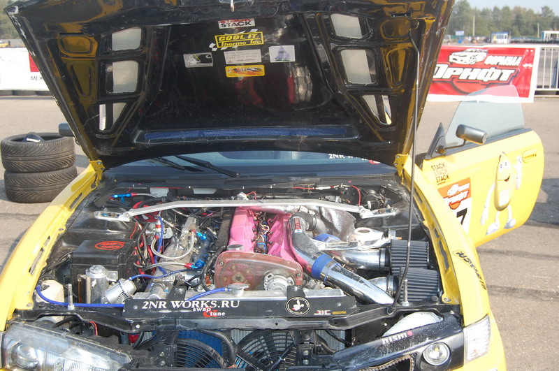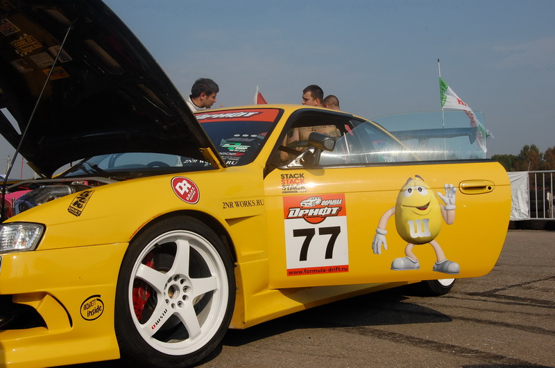 Жёлтая Nissan Silvia в кузове S14 Вильяма Гукасяна из команды 2NR-Works — самый мощный и, пожалуй, самый красивый и интересный автомобиль, принимающий участие в Чемпионате «Формула Дрифт». Поэтому неудивительно, что каждое выступление Вильяма на треке — это не только демонстрация мастерства управления автомобилем в заносе, но и оригинальное и яркое шоу. Как, например, его выступление на 4-ом этапе Чемпионата «Формула Дрифт», который прошёл 6-го сентября в подмосковных «Сорочанах». Вильям Гукасян на своей Nissan Silvia S14 занял второе место, вызвав восторг публики эффектным прохождением трассы. Вильям, окончил МГУПП по специальности инженер-технолог, у него свой бизнес, но больше всего его увлекают автомобили и их тюнинг. Он человек свободолюбивый, не любит ограничений и не может жить без экстрима. Машину он водит с 16 лет, участвовал в различных дисциплинах: в драг-рейсинге и кольцевых гонках в Мячково. А затем увлёкся ещё и дрифтингом. Ещё три года назад он ездил на Honda Civic и готовил её для кольца. Но, как и многие другие, увидев, как дрифтуют японцы, резко захотел пересесть на задний привод и овладеть техникой управляемого заноса. Поэтому, продав «хонду», стал искать машину, подходящую для дрифтинга. В итоге купил изначально «овощную» Nissan Silvia S14 97-года с автоматической коробкой передач, в первую очередь из-за понравившегося ему жёлтого цвета. О глобальном тюнинге ребята из 2NR-Works задумались сразу. Ведь её хозяин считает, что всё должно выглядеть красиво: большая скорость, большой угол заноса, больше дыма из-под колёс и, конечно же, машина должна быть яркой и оригинальной, приковывающей к себе взгляды. Собравшись в команду 7 лет назад, 2NR-Works занимались тем, что в свободное от основной работы время дорабатывали автомобили и принимали участие во всевозможных соревнованиях. Поэтому, за воплощение идеи сделать из этой Сильвии интересный и ни на что не похожий дрифт-кар, они приступили с особым энтузиазмом. В итоге, спустя год, после многочисленных экспериментов и вложения около 100 тыс. долларов получился действительно оригинальный как технически, так и внешне автомобиль. В этом автомобиле интересно действительно всё. Он разгоняется до 320 км/час. Всё, что сделано в нём, служит как для увеличения мощности, так и для надёжности. В дрифте можно обойтись гораздо меньшей мощностью, чем та, что в итоге была достигнута, но ведь машина в первую очередь строилась владельцем для себя, а Вильям очень любит высокую скорость. Началось всё с замены мотора, так как Вильяма изначально не устраивал 4-цилиндровый мотор, и он хотел иметь больше «горшков» под капотом. Сначала ребята хотели поставить RB20, но решили, что этого будет мало, и поставили RB25. Результат их не удовлетворил, и вскоре они поменяли его на знаменитый 26-ой мотор. В России — это первый проект установки RB26DETT, легендарного мотора от Nissan Skyline GT-R, в Nissan Silvia. Такой опыт был только за рубежом. Поэтому найти переходники для свапа мотора было не просто, многое додумывалось и доделывалось самостоятельно методом «проб и ошибок». Для увеличения мощности на этот мотор также был установлен новый комплект турбин TOMEI Arms, благодаря которым мощность в итоге довели до 668 лошадиных сил. Форсунки, валы, аулеты — практически всё в моторе сделано на фирме TOMEI. За работу двигателя и других систем автомобиля отвечает «мозг» Apexi PFS. Одновременно 