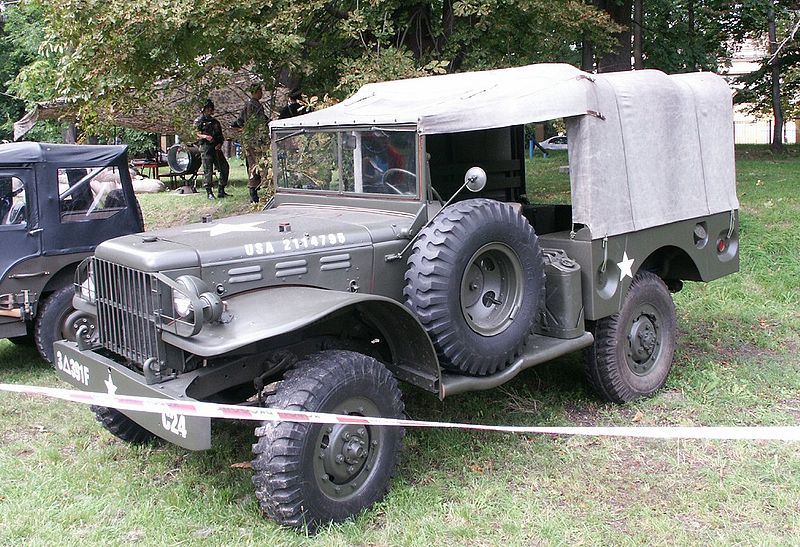 Если нужны, то вот фотографии Доджа (взято откудато из сетки): это действительно Додж 3/4 или, как правильно, WC-51. Спасибо Интернет-сообществу за помощь. вот что про него говорит Википедия Dodge WC-51 - американский армейский автомобиль повышенной проходимости времён второй мировой войны, тяжелый джип. Выпускался фирмой Dodge с 1941 года. Автомобили серии WC (от англ. Weapons Carrier - "носитель оружия") отличались простотой, технологичностью в производстве и высокой степенью унификации. С 1942 года поставлялись в СССР по договору ленд-лиза. В Красной Армии получил прозвище "Додж Три Четверти" из-за своей грузоподъёмности 750 кг (3/4 тонны). Описание Основные агрегаты унифицированы с грузовиками Dodge серии WF. Рама автомобиля лонжеронная, с четырьмя поперечинами сложной формы. Кабина - открытая, двухместная. Ветровое стекло откидывается вперёд. Слева от кабины закреплено запасное колесо на поворотном кронштейне. Кузов цельнометаллический, по бокам над колёсами - ящики для амуниции. На кузове установлены три дуги для тента. Пол кузова приспособлен для установки постамента под крупнокалиберный пулемёт или 37-мм пушку. Техническая характеристика Тип двигателя: Бензиновый, рядный, шестицилиндровый Рабочий объём: 3 770 см3 ход поршня = 117,47 мм диаметр цилиндра = 82,55 мм Максимальная мощность: 92 л.с., при 3200 об/мин Длина: 4235 мм Ширина: 2120 мм Высота: 1870 мм (без тента) Клиренс: 270 мм Колёсная база: 2490 мм Колея задняя: 1650 мм Колея передняя: 1670 мм Макс. скорость: 87 км/ч Грузоподъёмность: 750 кг Масса без груза: 2315 кг Размер шин: 9,00-16 [править] Модификации серии WC WC-51 - открытая кабина WC-52 - WC-51 с лебёдкой WC-53 - штабная с закрытым кузовом WC-54 - санитарная с закрытым кузовом WC-55 - открытый пятиместный штабной автомобиль WC-56 - командирский автомобиль WC-59 - ремонтная мастерская WC-60 - машина связи WC-62 - трёхосный вариант WC-63 - трёхосный вариант с лебёдкой Двигатели Т-215 Марка: Т-215 Тип: Бензиновый Объём: 3 770 см3 Максимальная мощность: 92 л.с., при 3200 об/мин Максимальный крутящий момент: 249 Н·м, при 1200 об/мин Конфигурация: рядный, шестицилиндровый Цилиндров: 6 Клапанов: 12 Ход поршня: 117,47 мм Диаметр цилиндра: 82,55 мм Cтепень сжатия: 6,7 Система питания: карбюратор Охлаждение: жидкостное Клапанной механизм: SV Тактность (число тактов): 4 Порядок работы цилиндров: 1-5-3-6-2-4 Рекомендованное топливо: Б-70 Трансмиссия 4ступенчатая (демультипликатор отсутствовал, передний мост подключался "жестко" Характеристики Массово-габаритные Длина: 4235 мм Ширина: 2120 мм Высота: 1870 мм (без тента), 2130 (с тентом) Клиренс: 273 мм Колёсная база: 2490 мм Колея задняя: 1650 мм Колея передняя: 1670 мм Масса: 2315 кг Динамические Макс. скорость: 87 км/ч Другое Грузоподъёмность: 750 кг Объём бака: 114 л -------------------- 89148508740