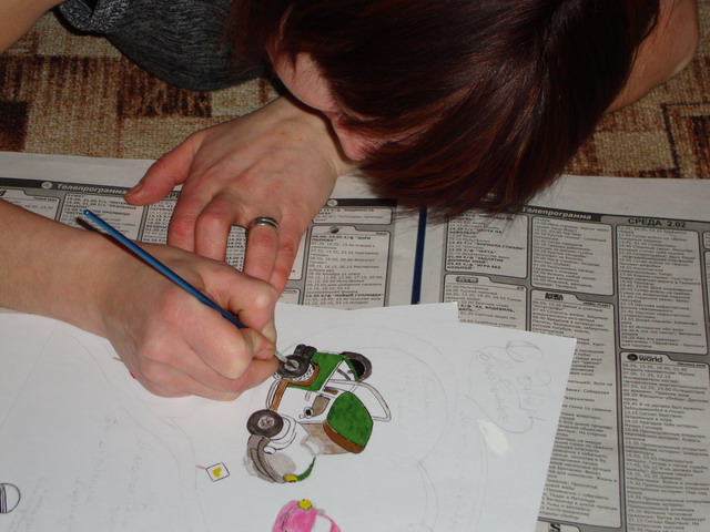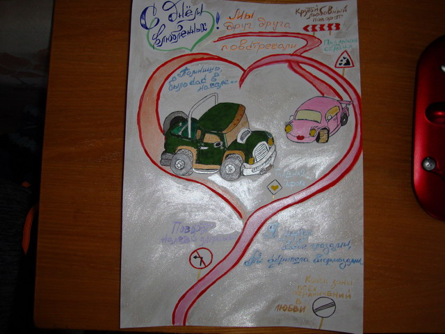 (№5 в списке) Вика (_VIKTORY_) и Алена (X-TPУЛЯ), параллельно с вырезанием сердечек для любимого КаМаЗа (машина), занимались своей открыткой, сделав эскиз (№4 в списке) как делалось это понятно из описания (№ 6 и №7 в списке) фотоотчета нет, сердечко и зайчика воплощала моя половина сама, а снимать некому было, я в тот момент пытался выйти на связь с КЕНТом (задание "Дистанция"), я лишь потом оформил готовый вариант на фотоаппарат (№8 в списке) коллективное творчество после выставки автовалентинок (задание №7), снова собралась в полседьмого вечера экстремальная группа вот так весело прошли у нас выходные P.S. - забыл добавить еще один эскизик от Оли (Olyam) Сообщение отредактировал GOLLANDEC - 15.2.2011, 22:27 -------------------- |