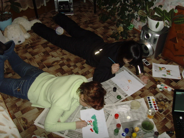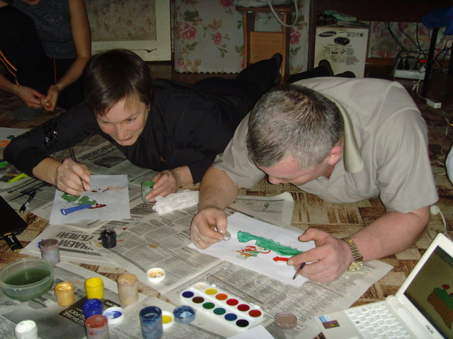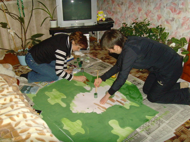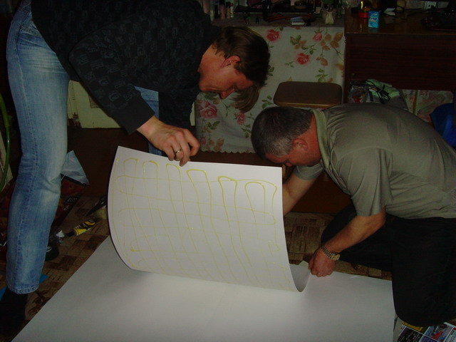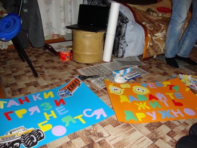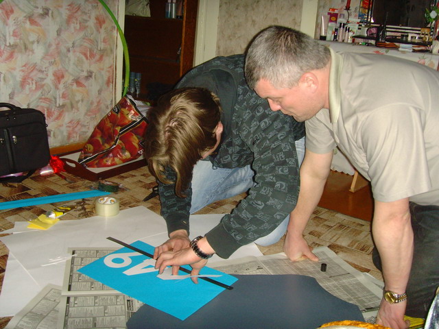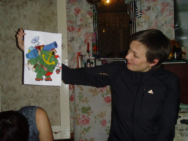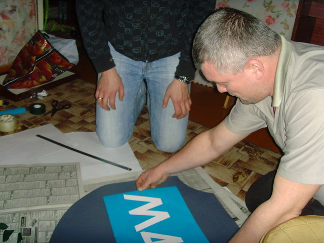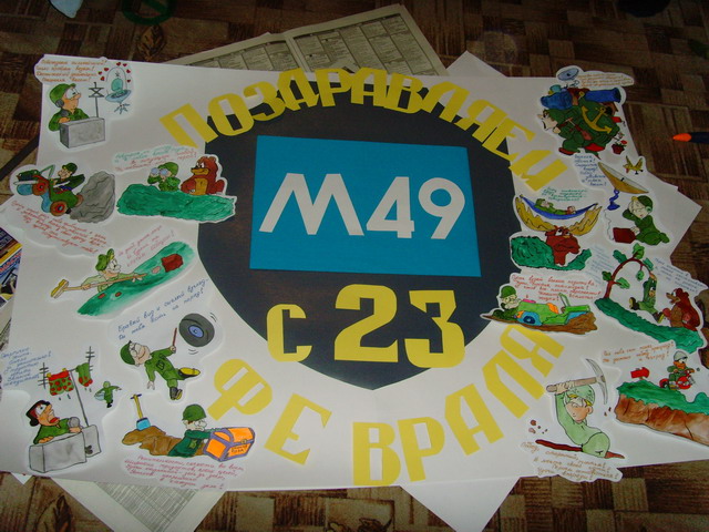 Вечер первый: расположившись на полу (отсюда половое-секретное) штаб квартиры №2 и не только эскизы и получился у нас вот такой набор картинок вечер второй: совершив вечерний намаз продолжила задуманное, был вырезан щит и отдан на покраску щит высох, приступили к культовой табличке М49 и вот торжественный момент, табличка получился вот такой промежуточный результат вечер третий (решающий): команда собралась доделать свою работу, а заодно подготовить и задание ОРГам на этом мы и закруглились и поздравили друг друга с окончанием работ над нашей поздравлялкой.... но тут же встал другой вопрос..., где взять Камаз, что б ее привезти???? Сообщение отредактировал GOLLANDEC - 23.2.2011, 18:18 -------------------- |