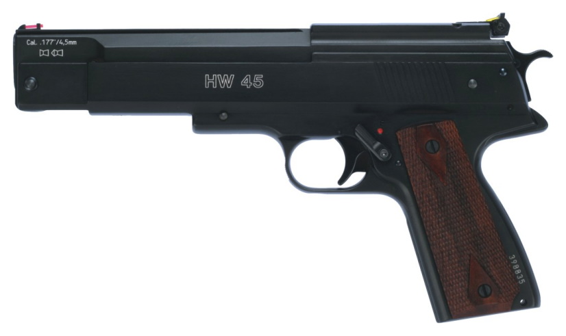 1. Отличный регулируемый спуск 2. Достаточно тихих выстрел, чтоб не беспокоить соседей 3. Невысокая мощность, достаточная для дырявленья бумаги на 20 метрах (попробовал) 4. Компактный, по сравнению со спортивными моделями. 4. Удобнейшая рукоятка и приятный баланс. 5. Простота в использовании (никаких СО2, автоматических предохранителей и т.п.) Основные ТТХ Тип - компрессионный Калибр - 4,5 мм Полная длина - 280 мм Масса - 1060 грамм "Заводская" начальная скорость пули - 125 м/с Начальная скорость пули ЖСБ Экзакт (0,547гр) - 116-117 м/с Начальная скорость пули РВС (0,45 гр) - 122-123 м/с Длина ствола - 170 мм HW75 HW45 -------------------- - А чего это у них машины ездят без водителя и с одним пассажиром?