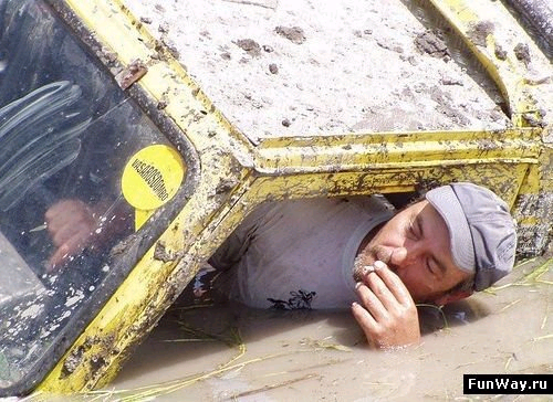 и хорошоооо подумайте, а надо ли оно вам? Тема старая, но мало ли кто то не читал. Чем круче джип- тем дальше п...вать за трактором! (народная мудрость). НАЧАЛО. Дело было в начале зимы, когда снегу уже навалило прилично, а земля еще глубоко не промерзла. Весьма обманчивое время, чтобы кататься по бездорожью . Ну, тут уж как говорится- дурная голова ногам покою не дает: или просто слова сына сдернули меня с асфальтовой дороги: "Пап, а у нас взапрвду настоящий джип?" -Взапрвду- настоящий!! -Не паркетник?(где он слов таких нахватался?). -Да нет, сынок. У нас самый что ни на есть настоящий:..и дизель 6200 кбсм и ,мосты :.Ты что не помнишь как мы его прозвали? -Почему не помню,помню-ТАНК! Только мы на нем по настоящему бездорожью никогда не ездили:.А вдруг он и не ТАНК вовсе?! -?????!!!!!! Правый поворотник.Стоп. -Значит проверить хочешь? -Очень!!!!!!! Сам уже слегка на взводе, пол-года на нем езжу ,а все никак не соберусь с дороги съехать:. Видимо звезды сегодня сложились ТАК. Видимо- ПОРА! Вылезаю, включаю "хабы"-передний мост, прикидываю куда свернуть "в говны", так сказать:испытатель, блин! -Ладно, поколбасимся немного:. Время часа 4 вечера, уже стемнело и дороги почти не видно, это плохо. До дома недалеко, километра 3 так, что если что-нибудь случится - не замерзнем , это хорошо. Мобильник работает, куртки у нас теплые:.В запасе есть еще Шевроле-Тахо у мамы. Риск минимален. ЕДЕМ!!!! Сворачиваю на поле. Дорога сразу кончилась, но наш ТАНК бодренько побежал по свежему снегу: Дизелек ворчит, метель из под колес:.красота!!!!!! Только потряхивает нехило- ходы подвески большие, но тут уж ничего не поделаешь- надо платить за удовольствие. Отъехали от дороги уже метров 600, поворачиваюсь к сыну : -Ну как тебе? Не укачало? Обратно заворачиваем? Вижу радостные глаза мальчишки, прямо светится весь: - Пап, это так круто!!! Тут ведь до нас еще никто наверное на машине не ездил, только на тракторе!!! А дай мне порулить , а? Вот это ТАНК!!!!!! Во дает!!! :..ну и все такое:. Эмоции захлестывают, как говорится , полные штаны счастья. А парень мой хотя и 7 лет отроду тогда был, но водить уже немного мог. "А чего, поле кругом на километр, пусть проедется немного", -подумал я и остановился. -Давай -перелезай! Водила! Перелез, подвинул под себя кресло до упора вперед :в зеркала взглянул:.как взрослый-отметил я. -Ладно-ладно, зеркала тебе в поле не понадобятся :.Давай до леса и обратно. И покатили потихоньку .Сын - парень осторожный, понимает, что не стоит резких движений делать:катим себе на 2 передаче:Подъезжаем к верхней точке поля и тут передние колеса ( 35 дюймов) резко уходят вниз, проламывая лед!!! Машина клюет носом, я упираюсь руками в торпеду. Я даже толком и среагировать не успел, а что толку -секунда и все! Стоим перекошенные. Мальчишка мой напугался не на шутку и педальку газа к полу-то и придавил! Или наступил на нее просто от перекоса. ТАНК взрычал своими 8 горшками и плавно, раздвигая бампером говны и булькая двумя глушаками, въехал в ручеек всеми 4 колесами:.Сели!!!-пронеслось в башке. А малыш вцепился в руль и просто уже плачет(но руль не бросает) И ГАЗУЕТ,ГАЗУЕТ!!!!!! -НЕ ГАЗУУУУЙ!!!!!!! Ору я, перекрикивая дизель. А его как заклинило -мы уже не едем, а просто окапываемся, колеса вывесились и теперь просто забрасывают кузов глиной. Я наконец догадываюсь перекинуть коробку (АКПП) на нейтраль. УФФ!!! Сидим :.Темно:.. ПРИКЛЮЧЕНИЯ НАЧИНАЮТСЯ. -Ну в