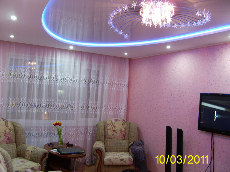Мне кажется, что просто пустой потолок-это не интересно... Даже в наших планировках с относительно низкими потолками в 2,5м. Поэтому сделал натяжной+гипсокартонный с подсветкой RGB. Опыта не было, в инете пишут только в общих чертах, а там нюансов-ого-го! Намучился с ним месяц, но результат порадовал. И радует до сих пор. Можно настраивать подсветку под любое настроение...меняет плавно цвета и т.д. Для меня лучше сделать всё самому, чем кого-то заказывать. Тем более в фирмах, куда обращался все разводили руками. В натуре выглядит гораздо веселее и лучше, чем на фото. Удачи в ремонте! -------------------- Диагностика двигателя и всех электронных систем легковых авто.